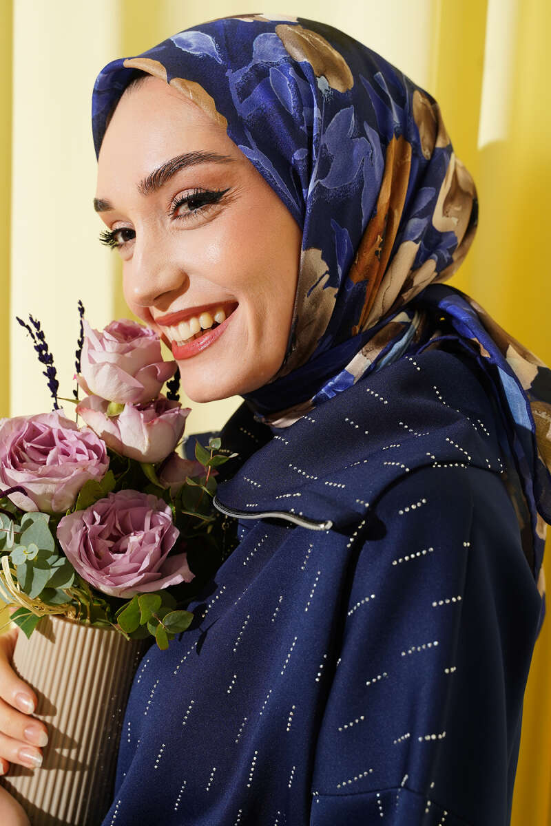 Flowers Desen Demore Eşarp Lacivert