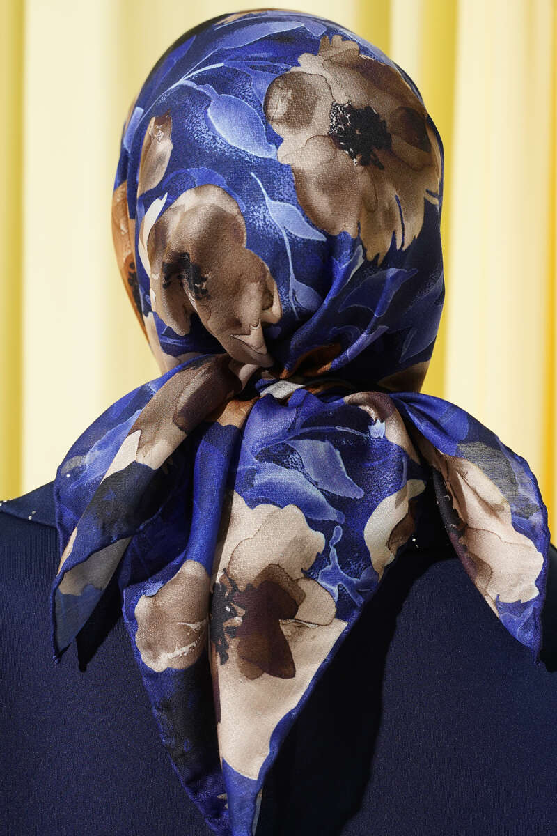 Ebruli Çiçekli Bambu Kraş Eşarp Kahve