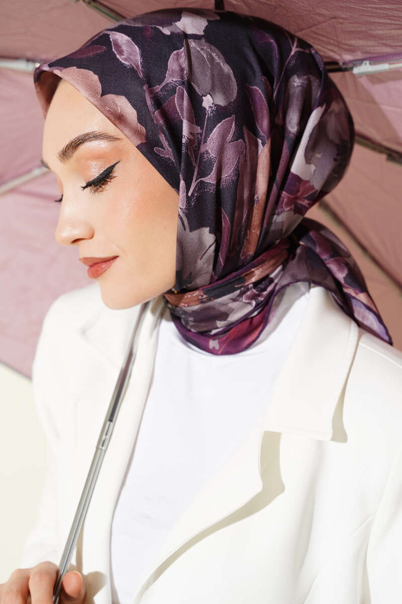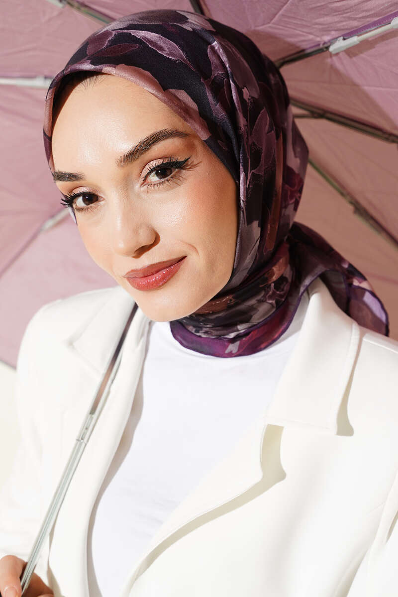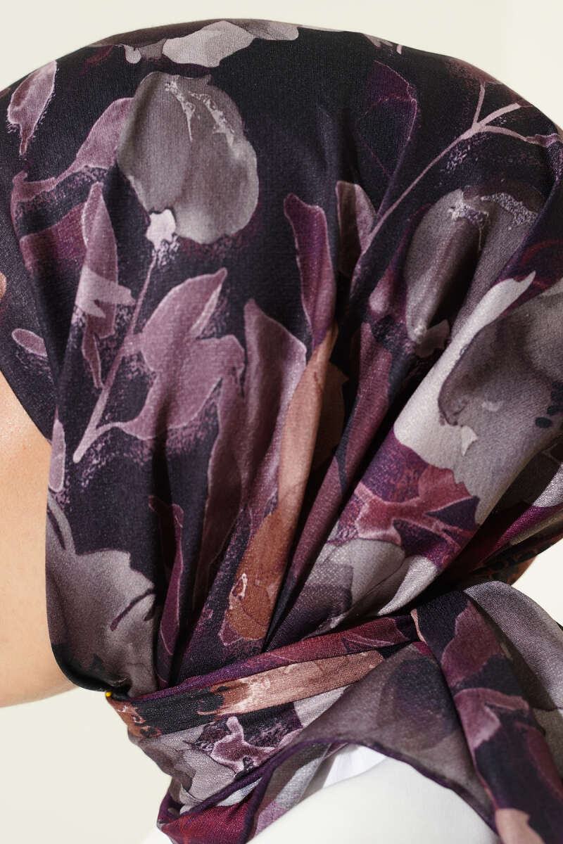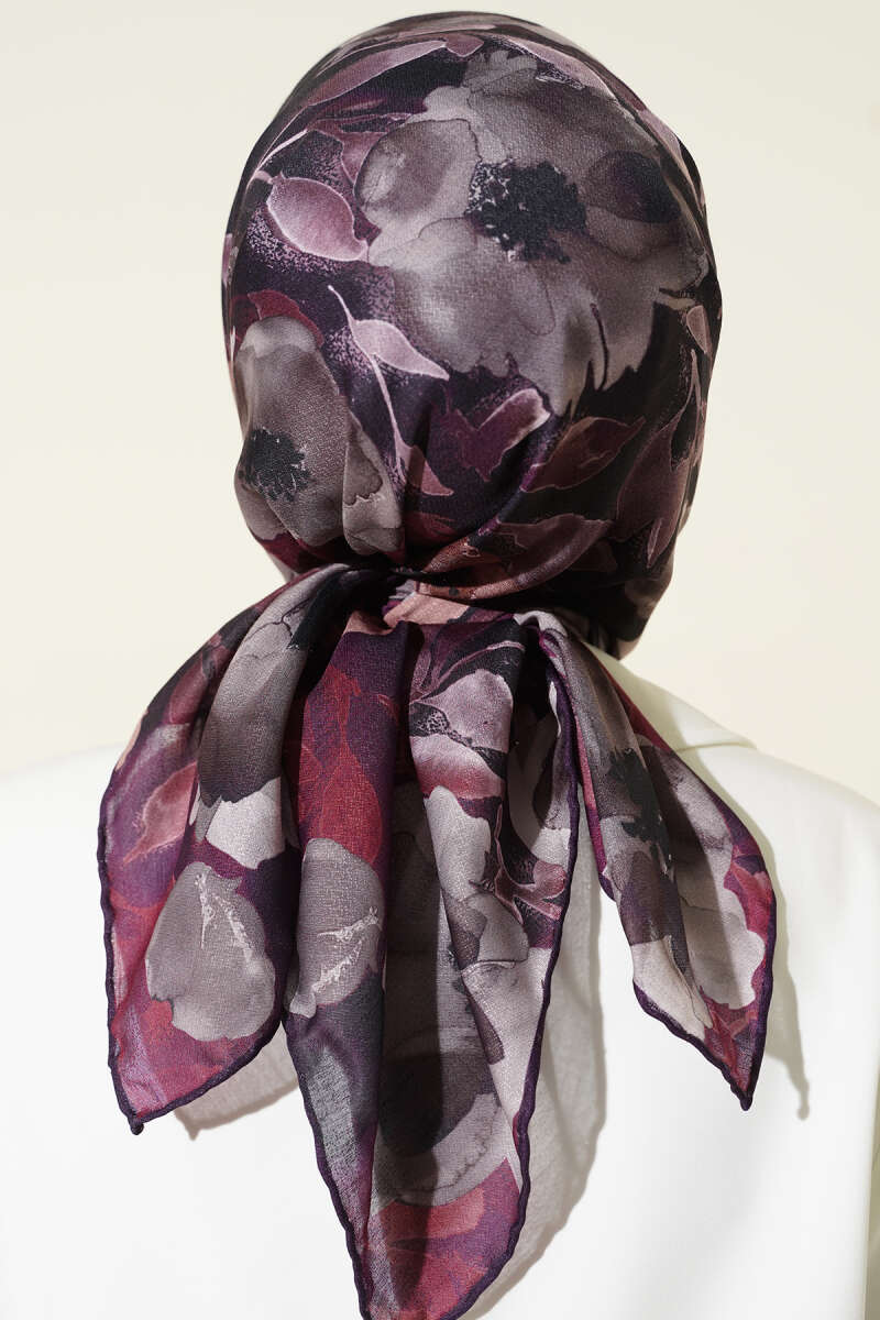 Flowers Desen Demore Eşarp Mürdüm