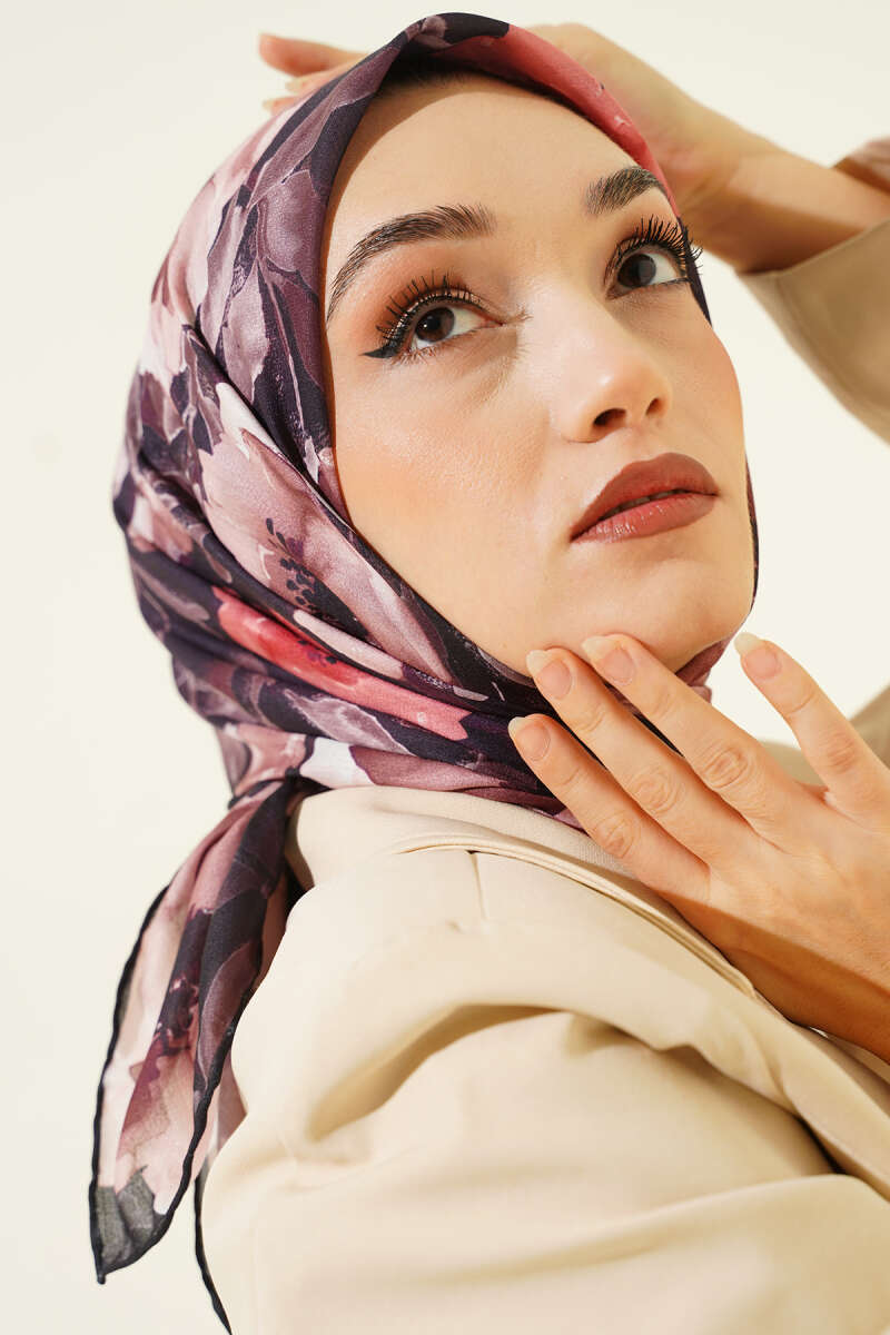 Flowers Desen Demore Eşarp Mürdüm