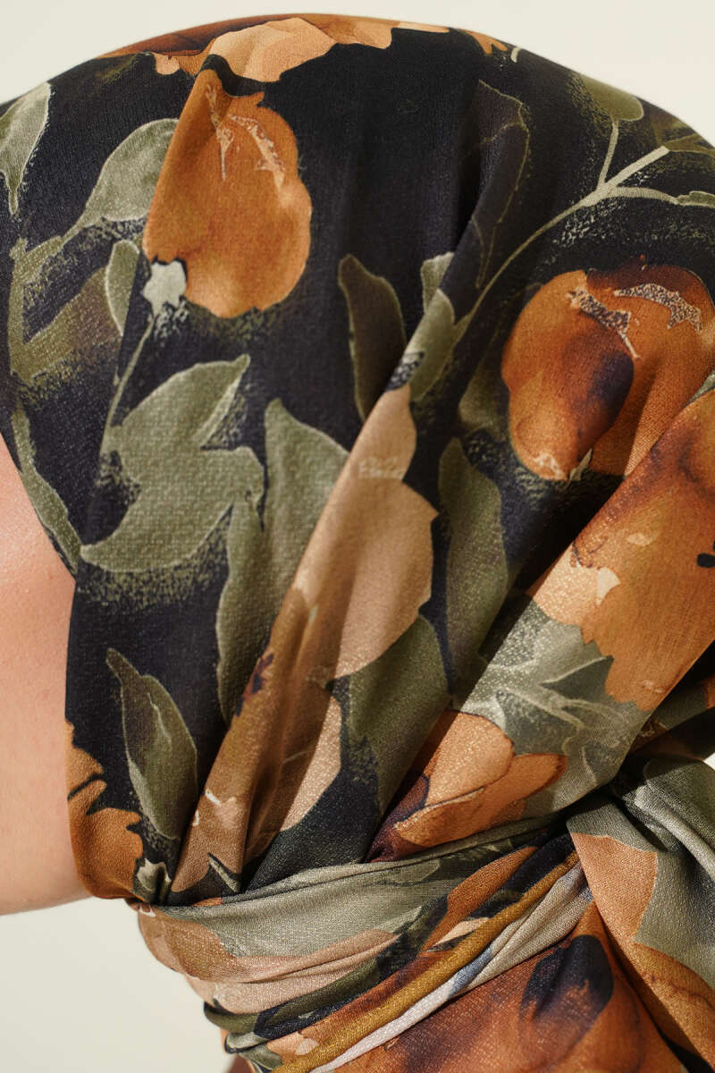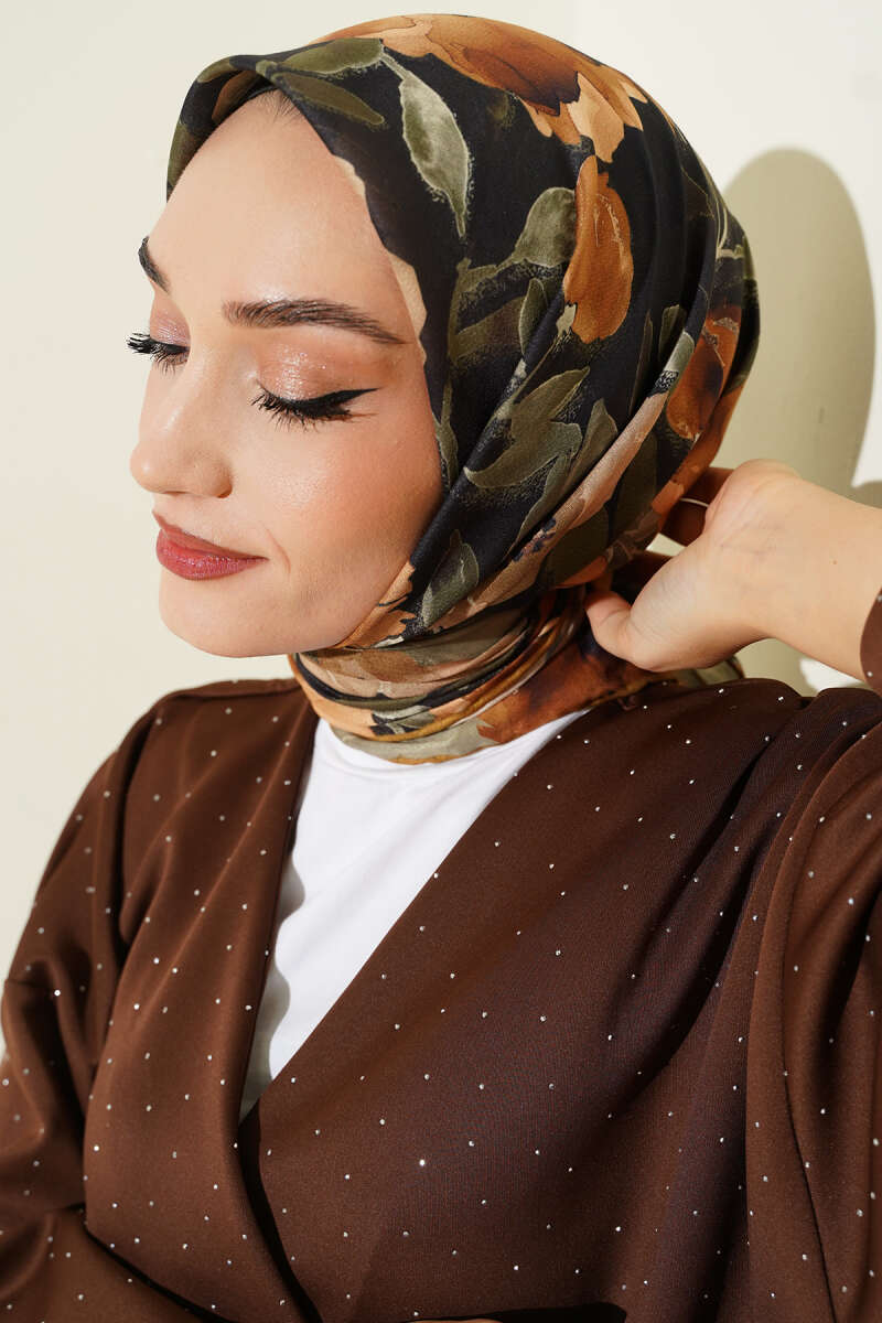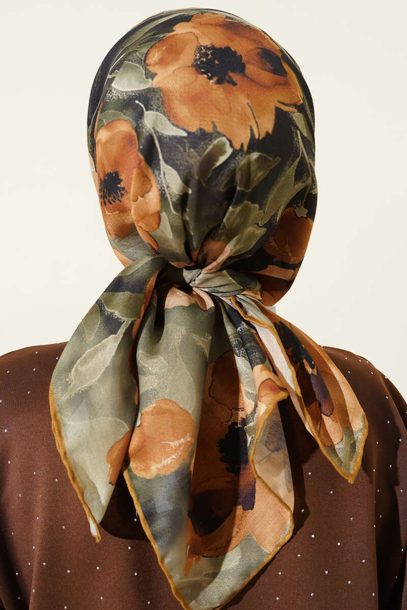 Çiçekli Bambu Kraş Şal Yağ Yeşili