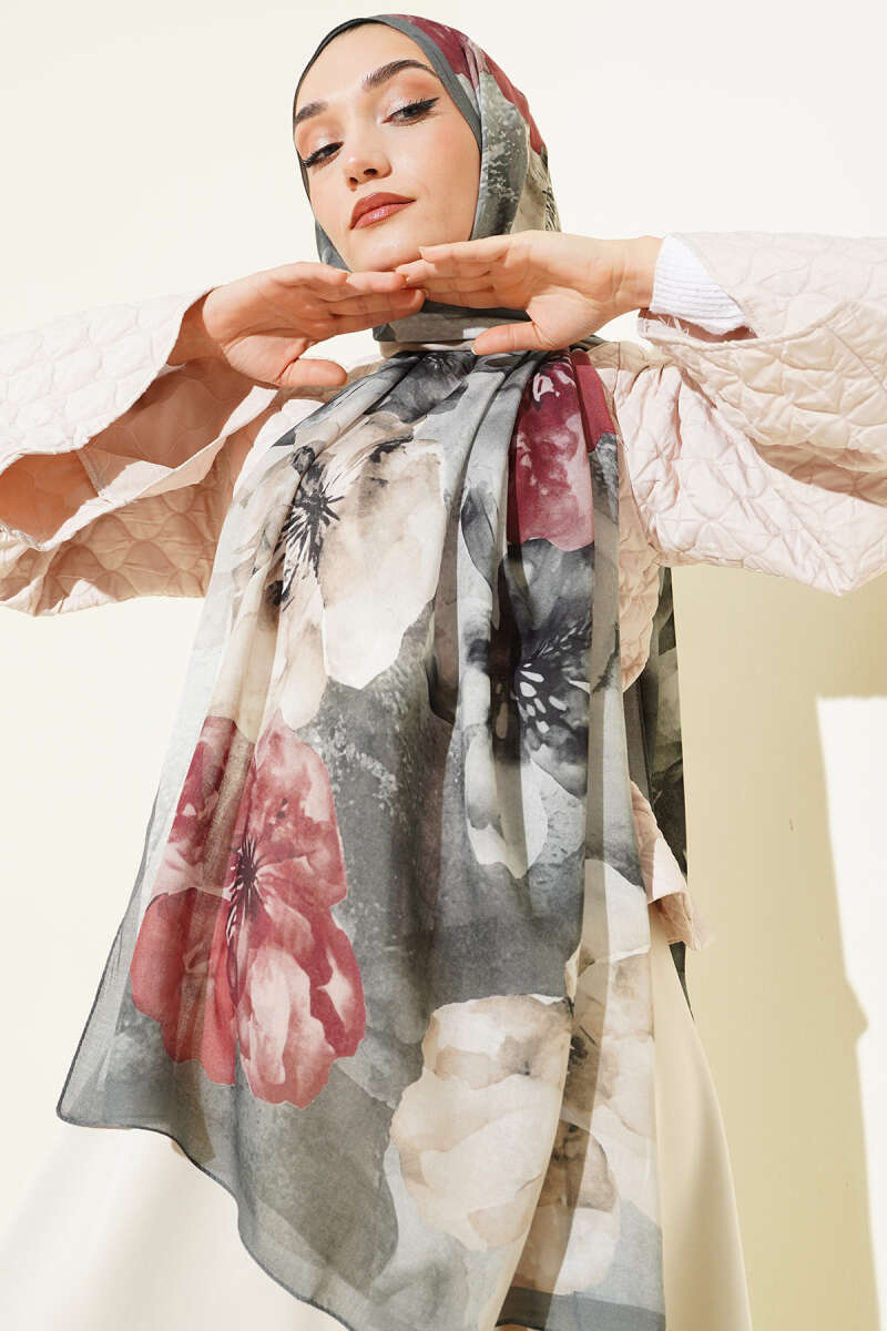 Flowers Desen Rami Şal Gri
