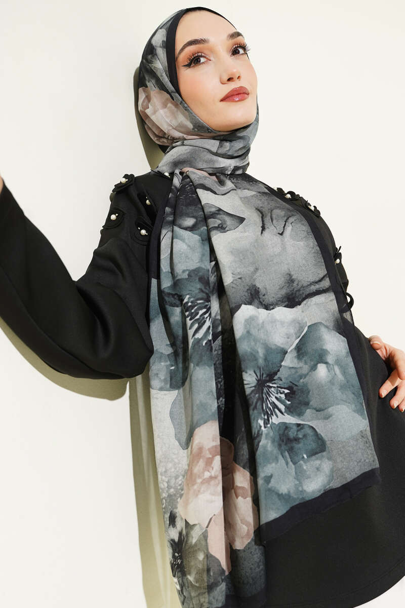 Flowers Desen Demore Eşarp Yağ Yeşili