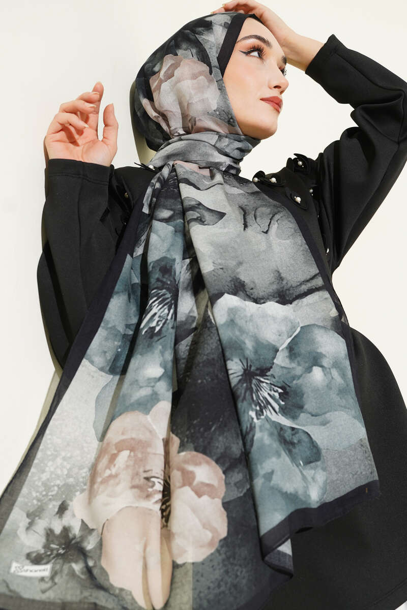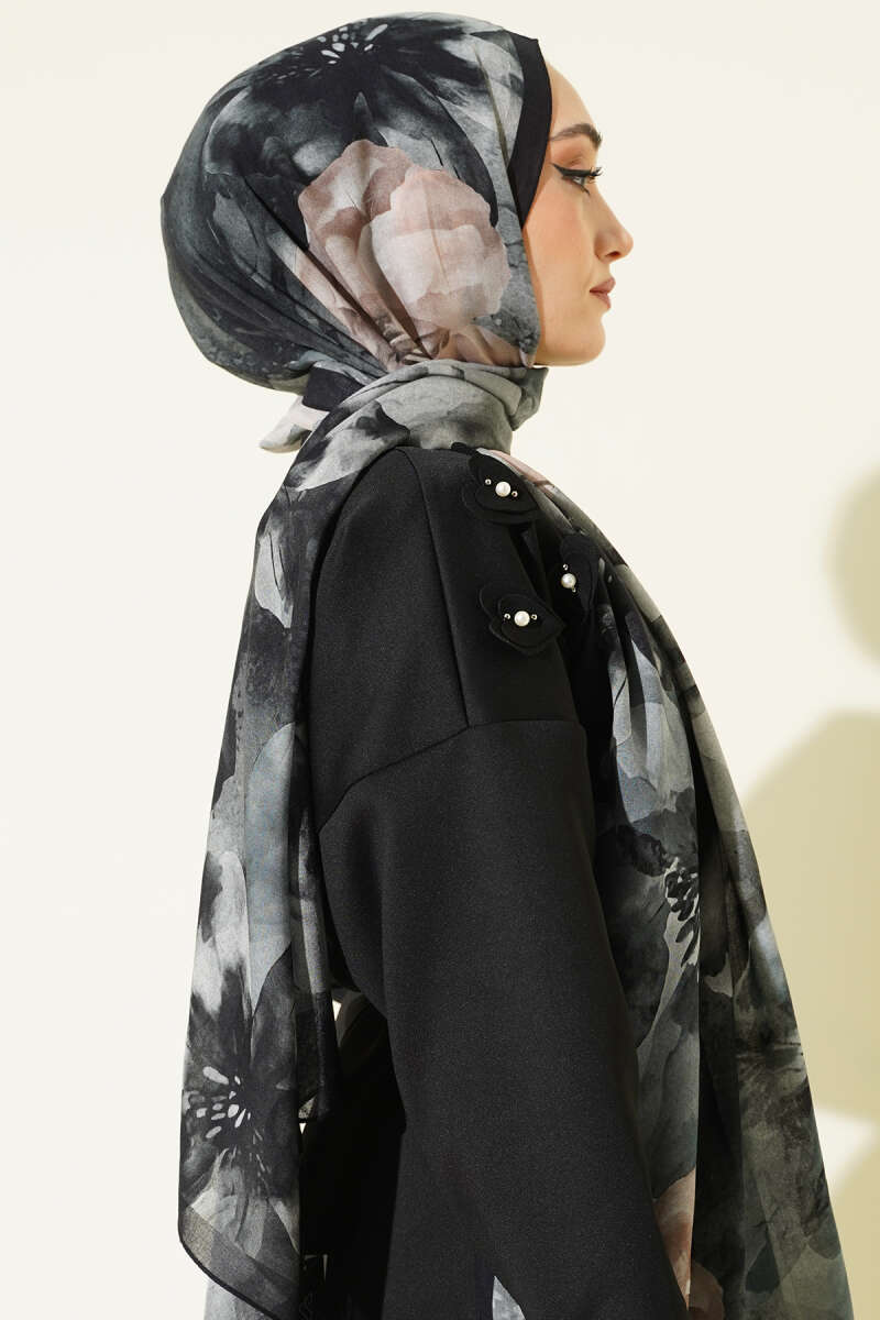Minik Çiçek Motifli Soft Şal Siyah Kahve