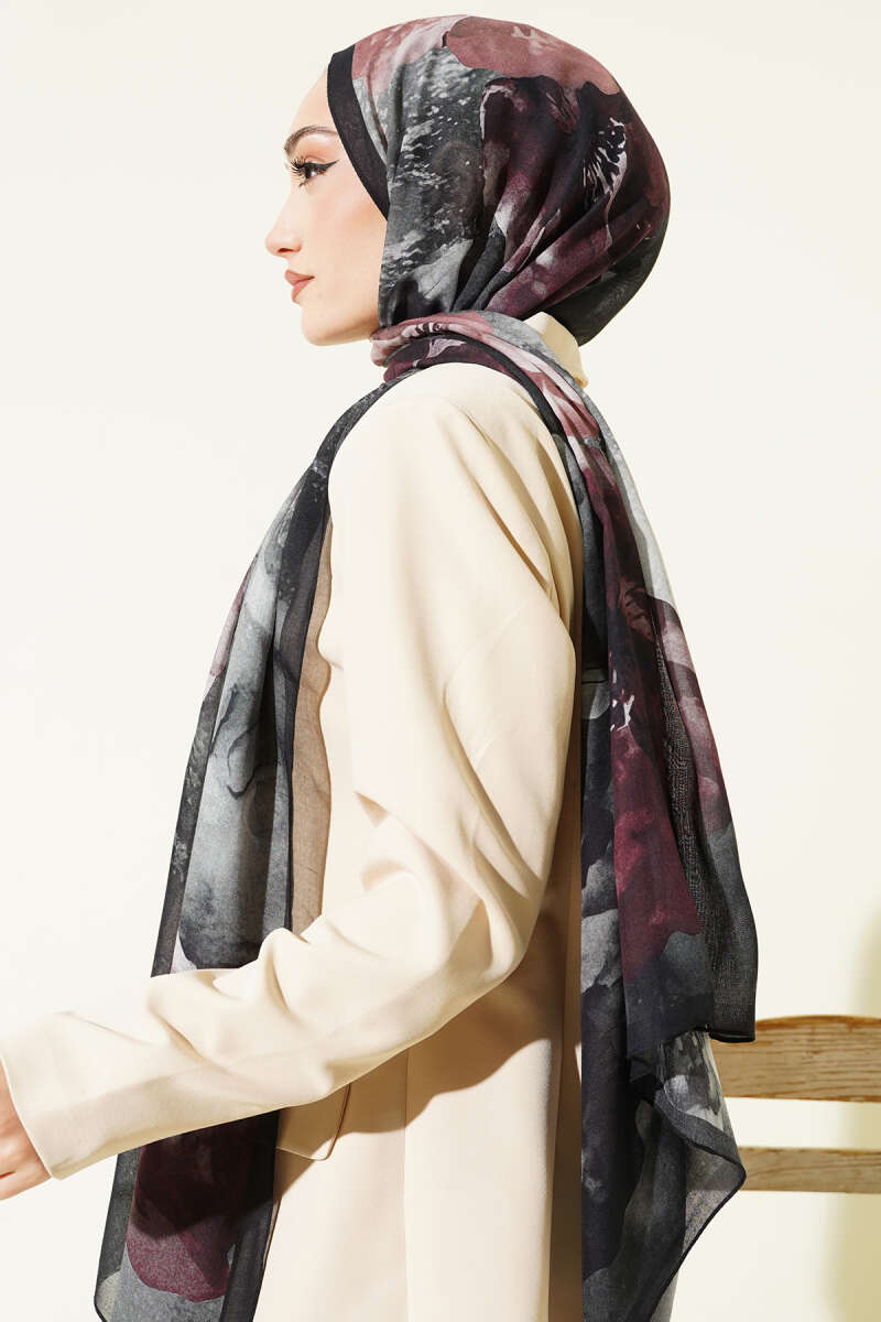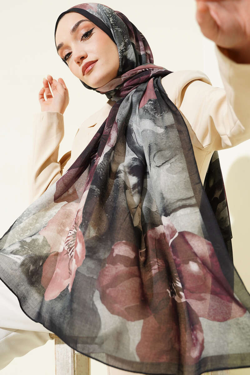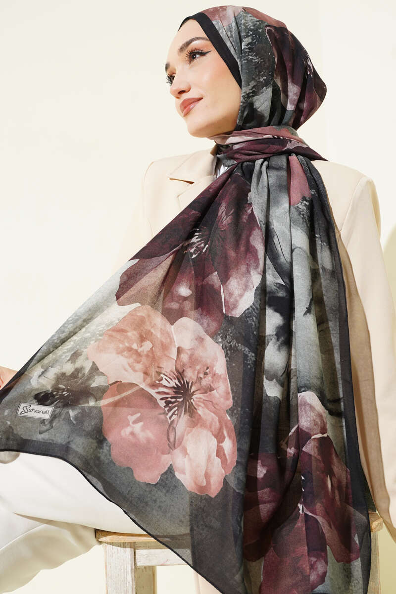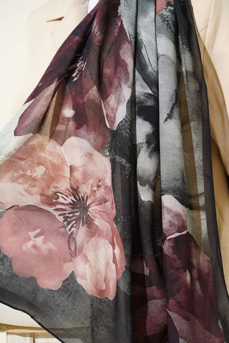 Flowers Desen Demore Eşarp Yağ Yeşili
