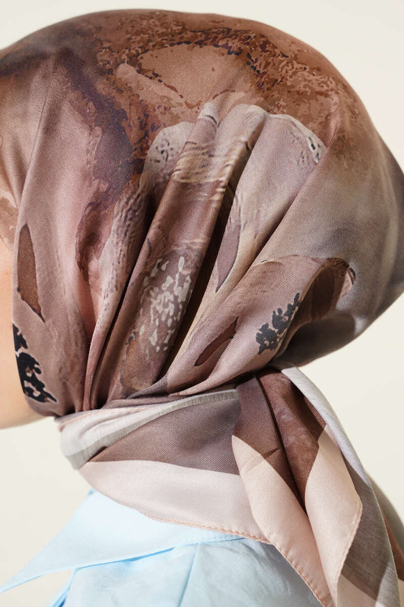 Mini Boncuk Detaylı Eşarp Kahve