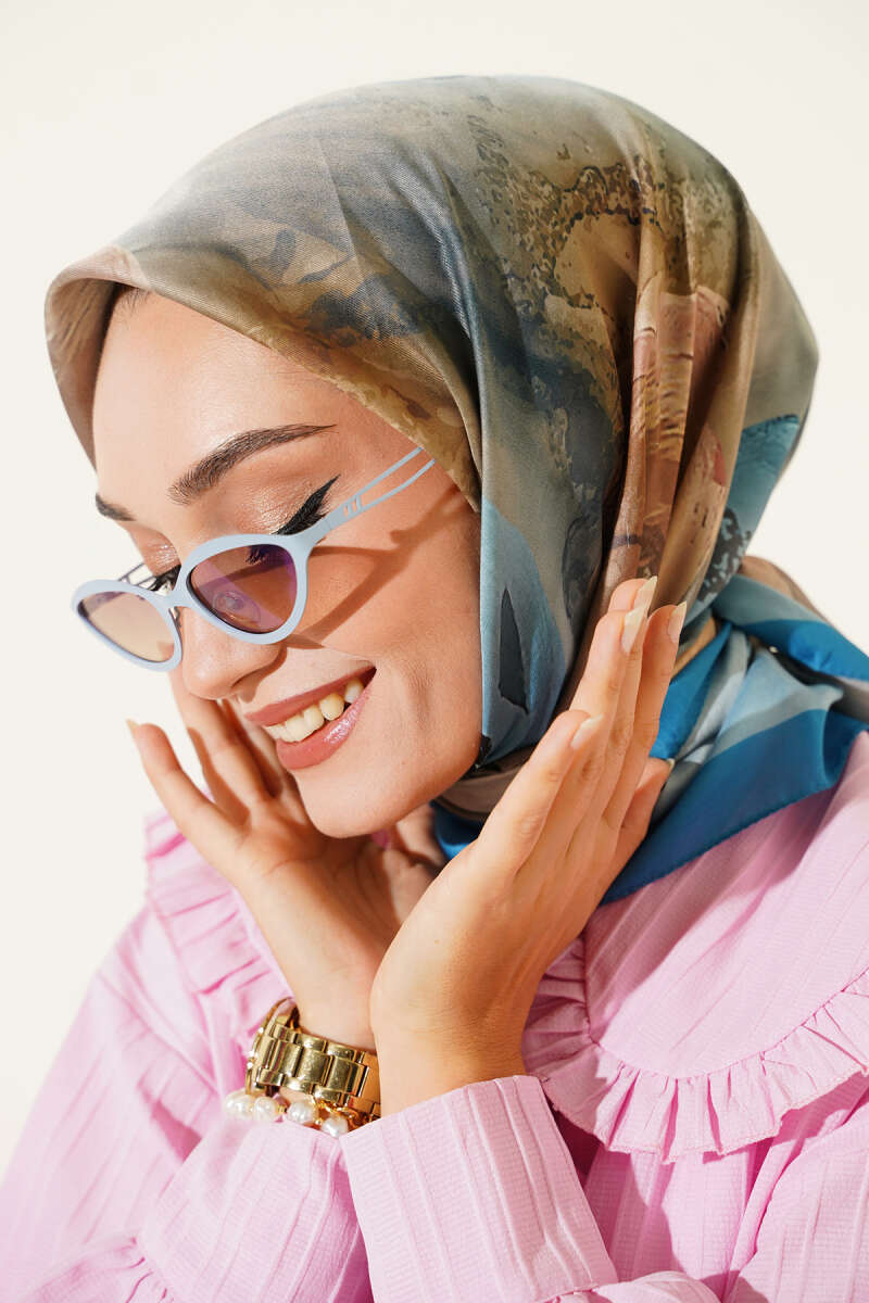 Çiçekli Şerit Geçiş Detaylı Şal Taba