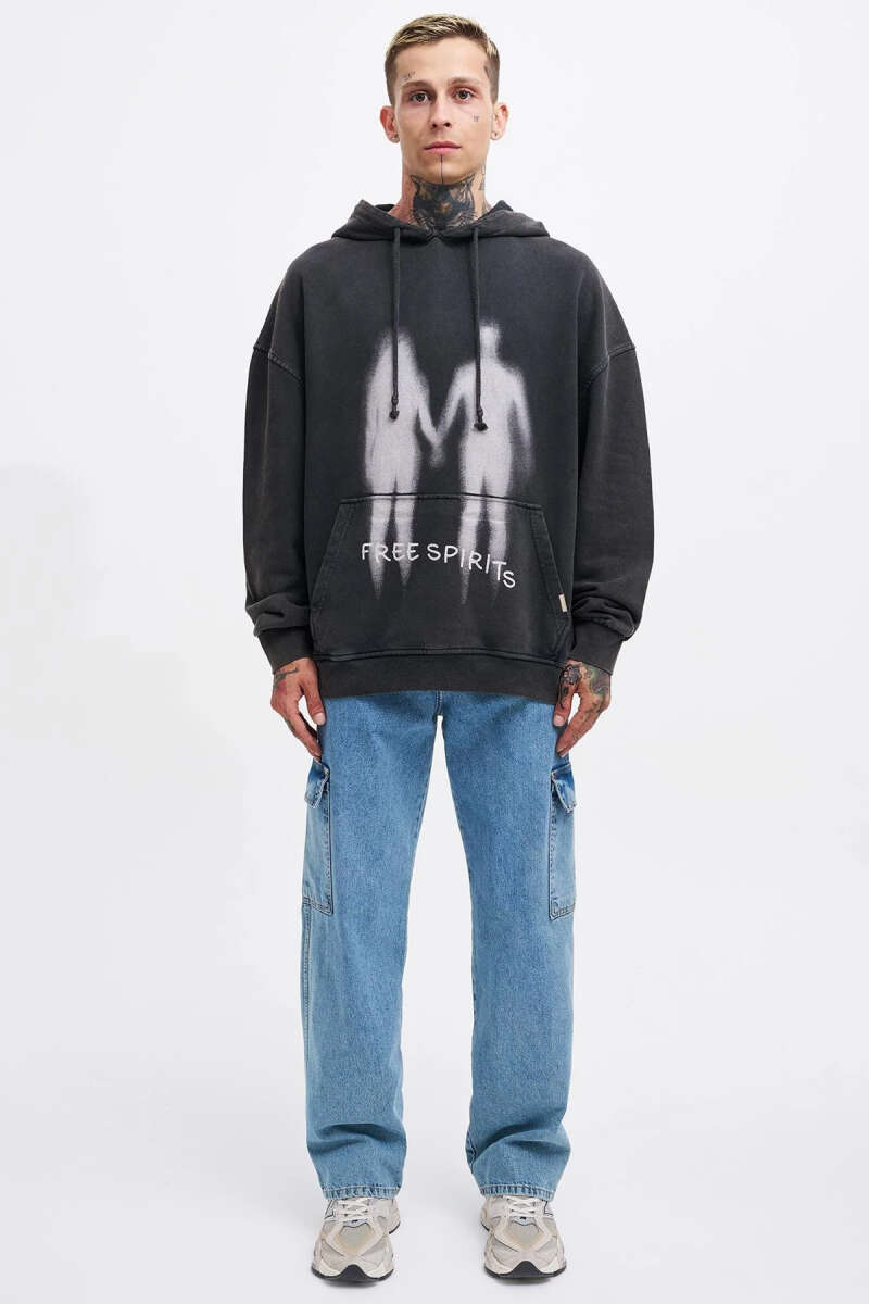 Free Sprit Baskılı Oversize Erkek Sweatshirt Gri