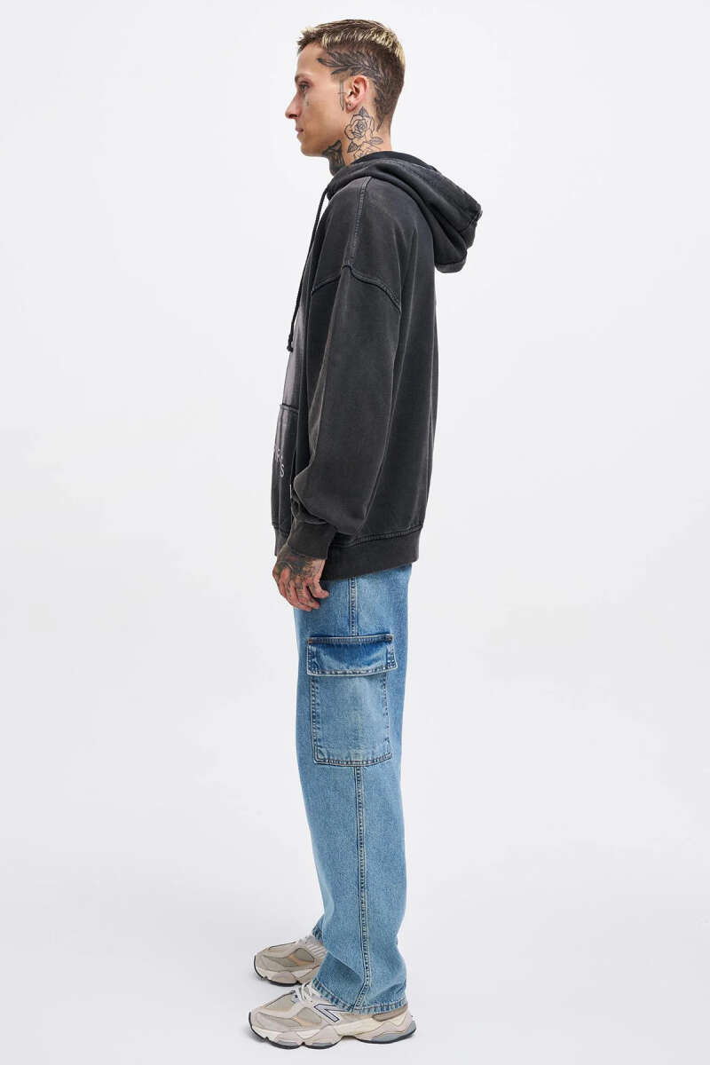 Kapüşonlu Nakışlı Oversize Erkek Sweatshirt Antrasit