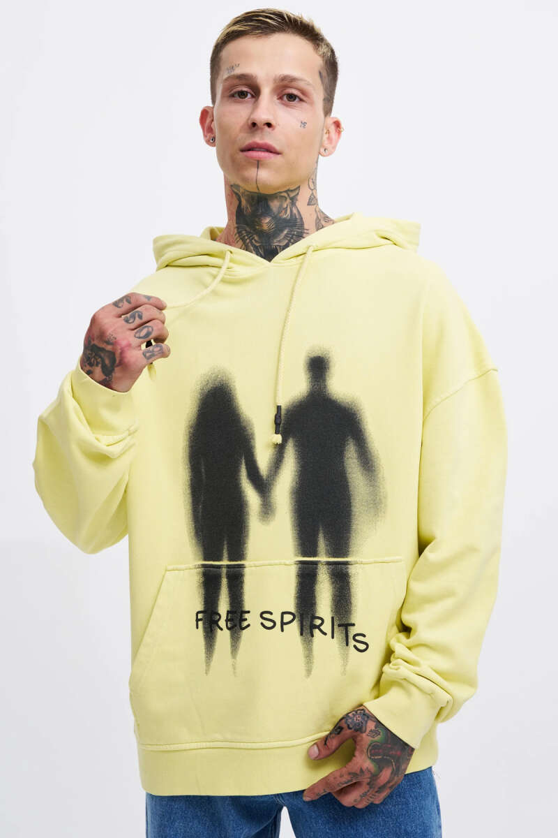 Free Sprit Baskılı Oversize Erkek Sweatshirt Gri