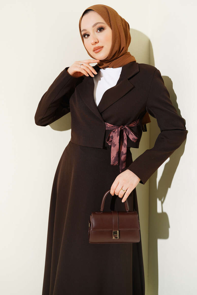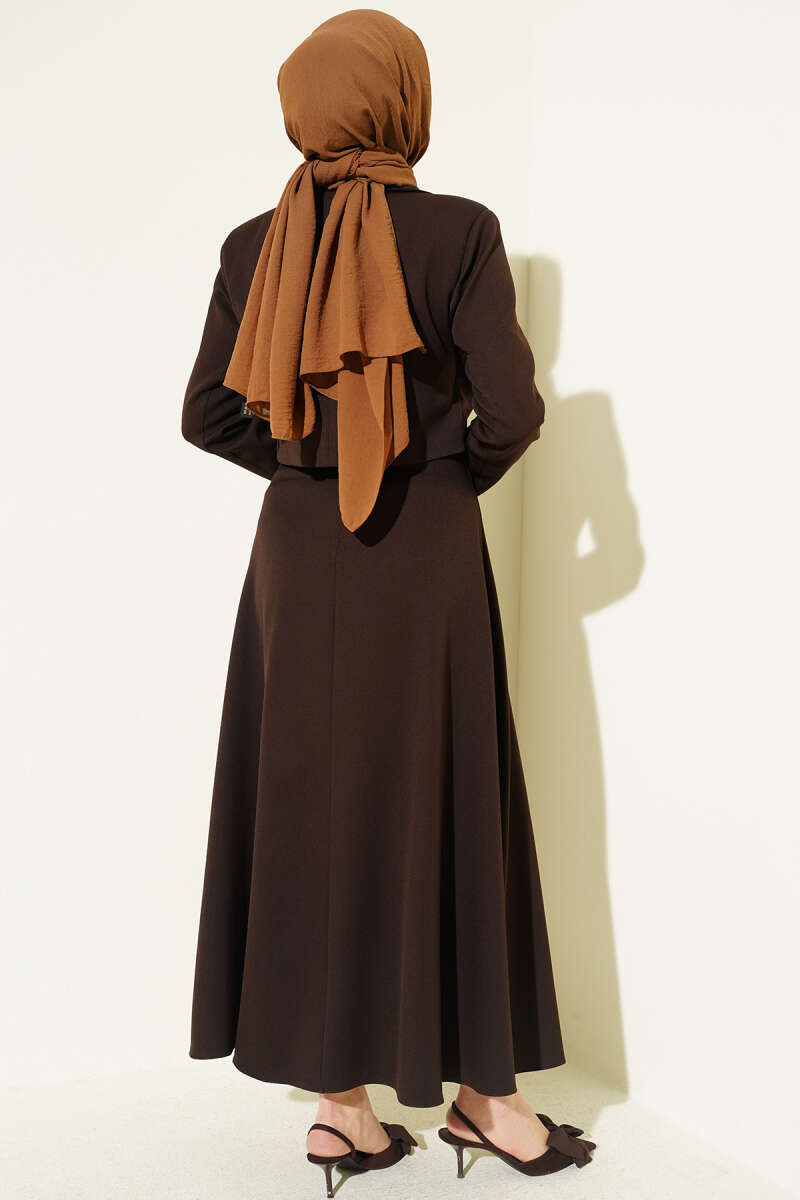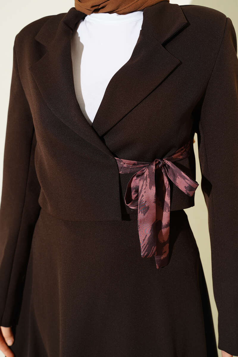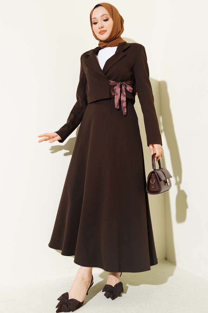 Fular Bağlamalı Etekli İkili Takım Kahve