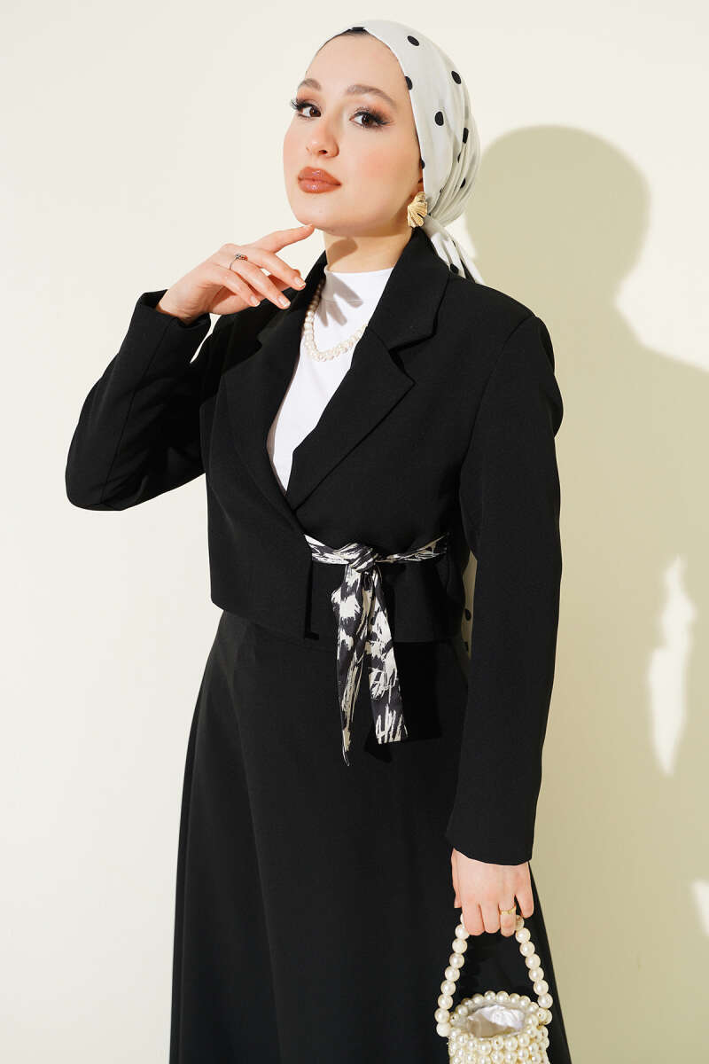 Fular Bağlamalı Etekli İkili Takım Siyah