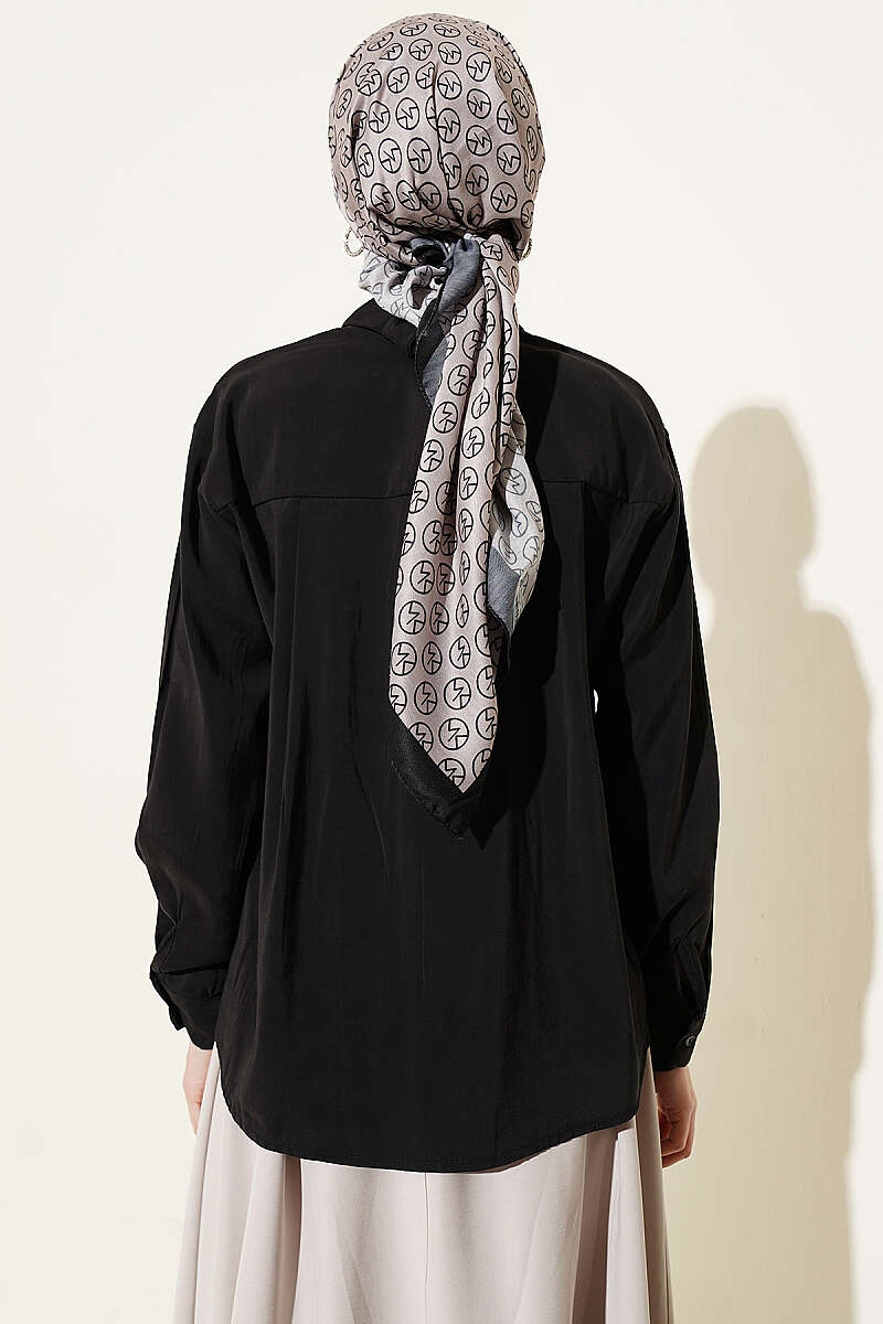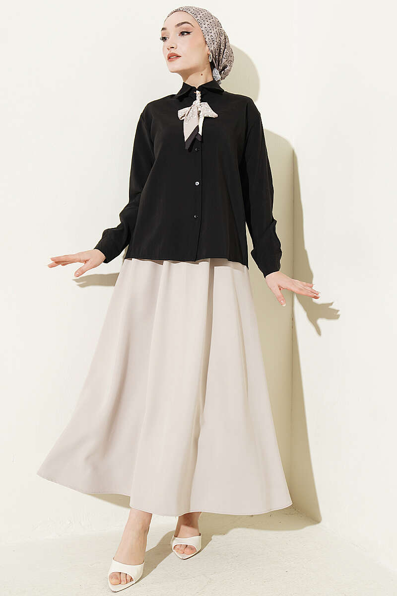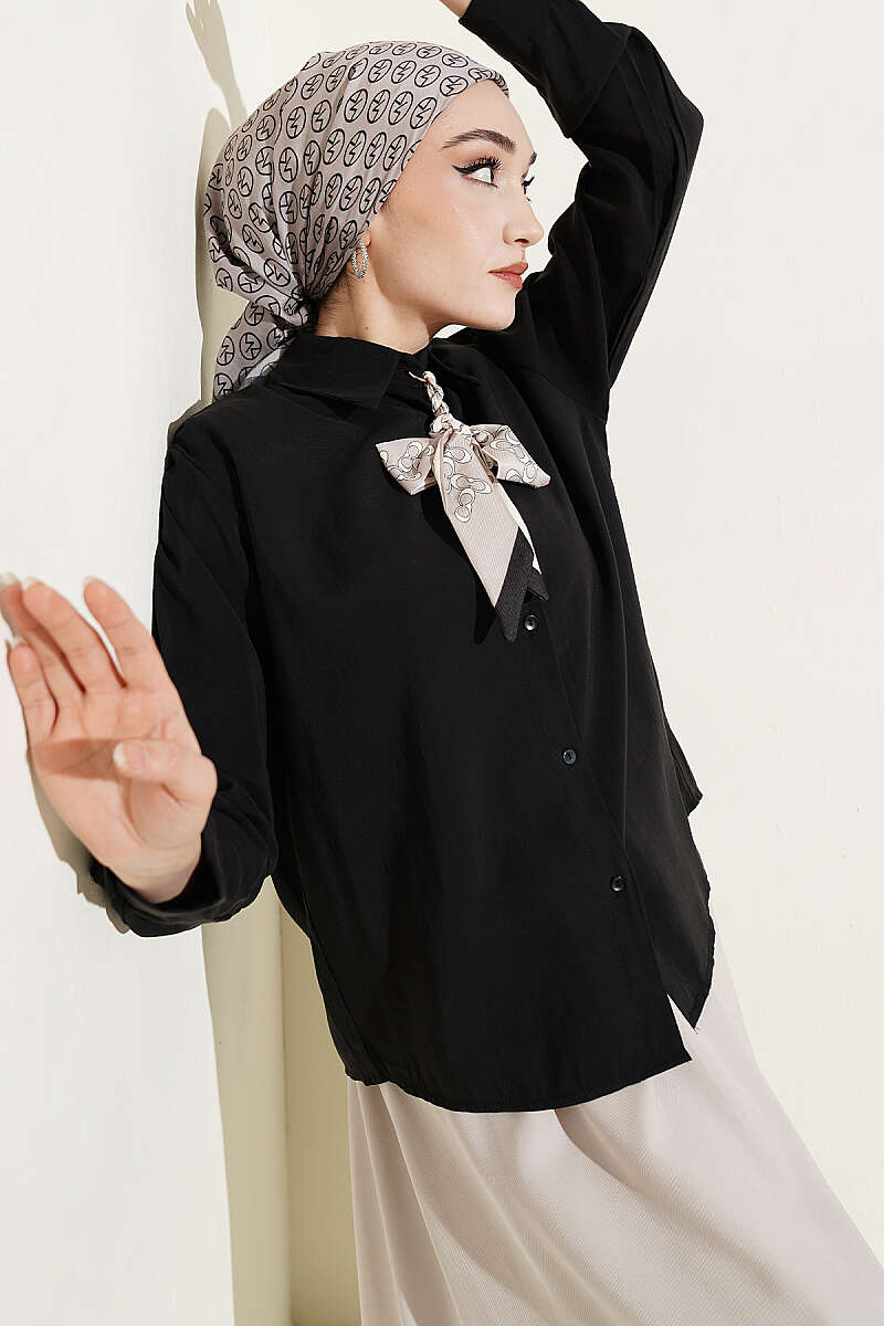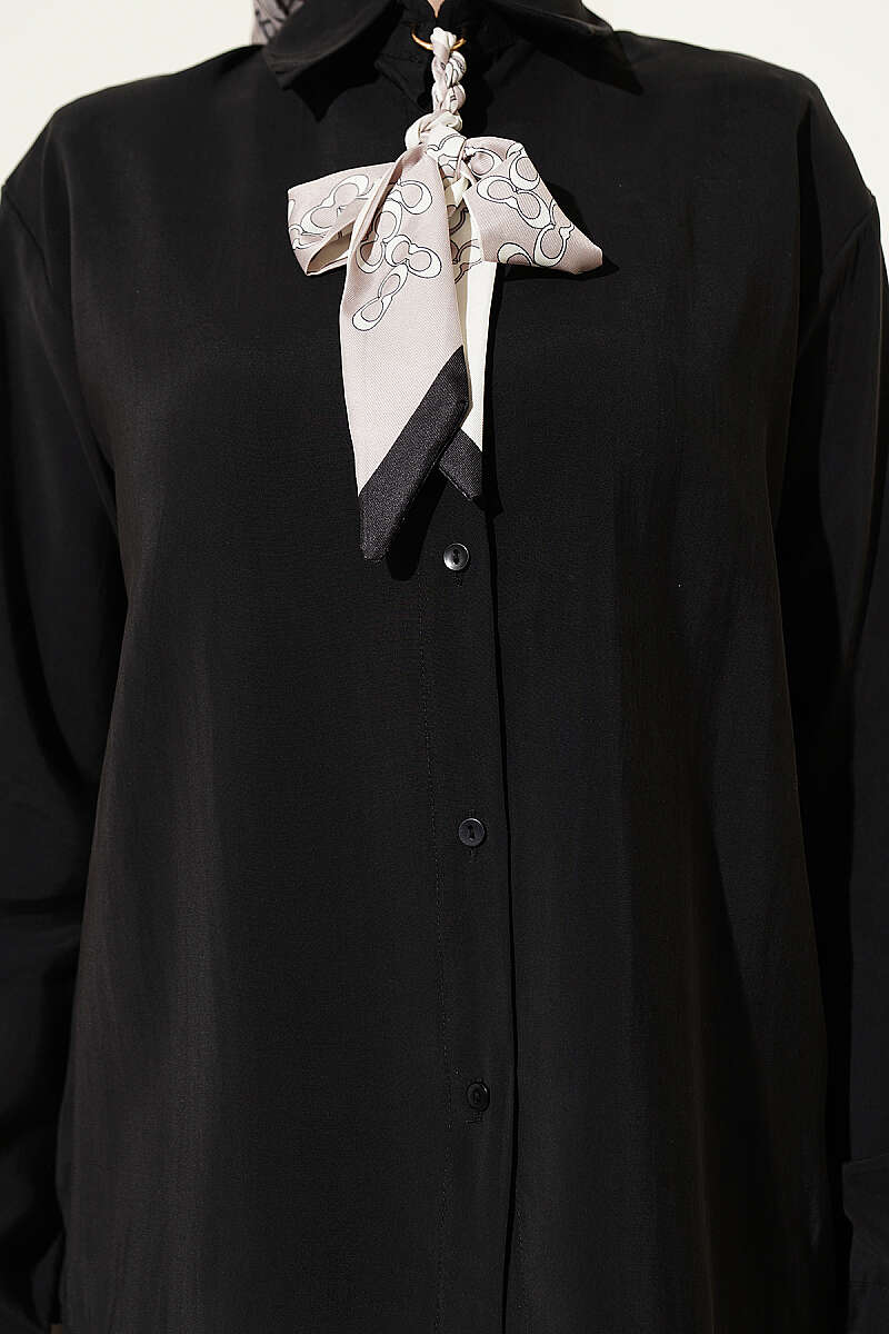 Fular Detaylı Basic Modal Gömlek Siyah