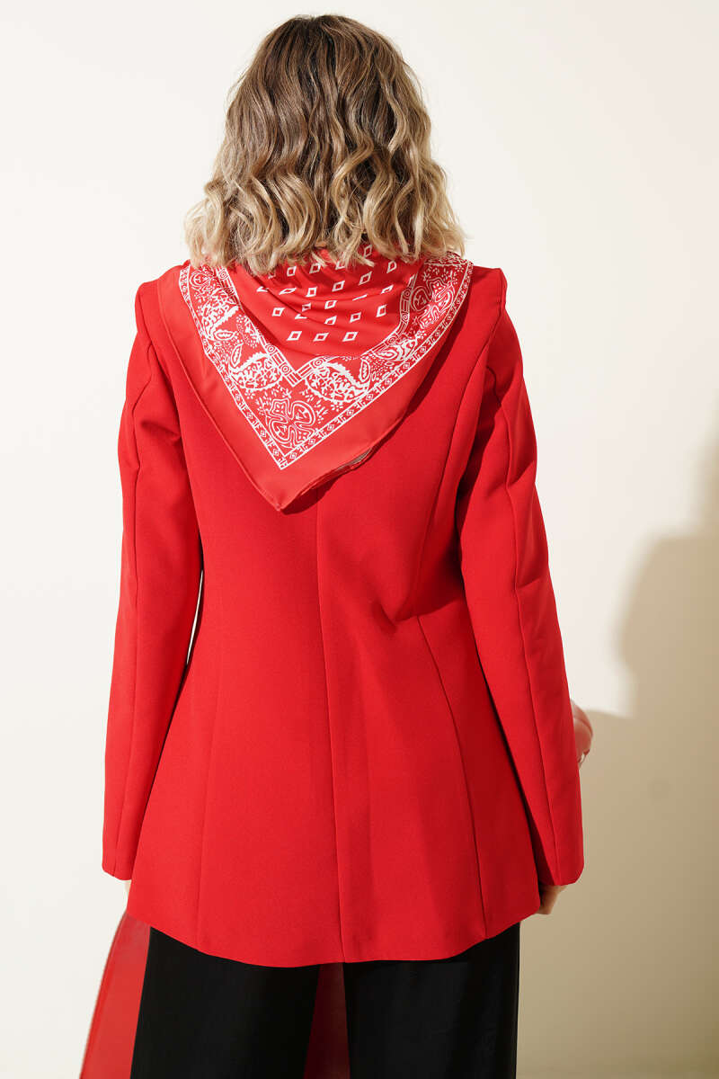 Fular Detaylı Blazer Ceket Kırmızı