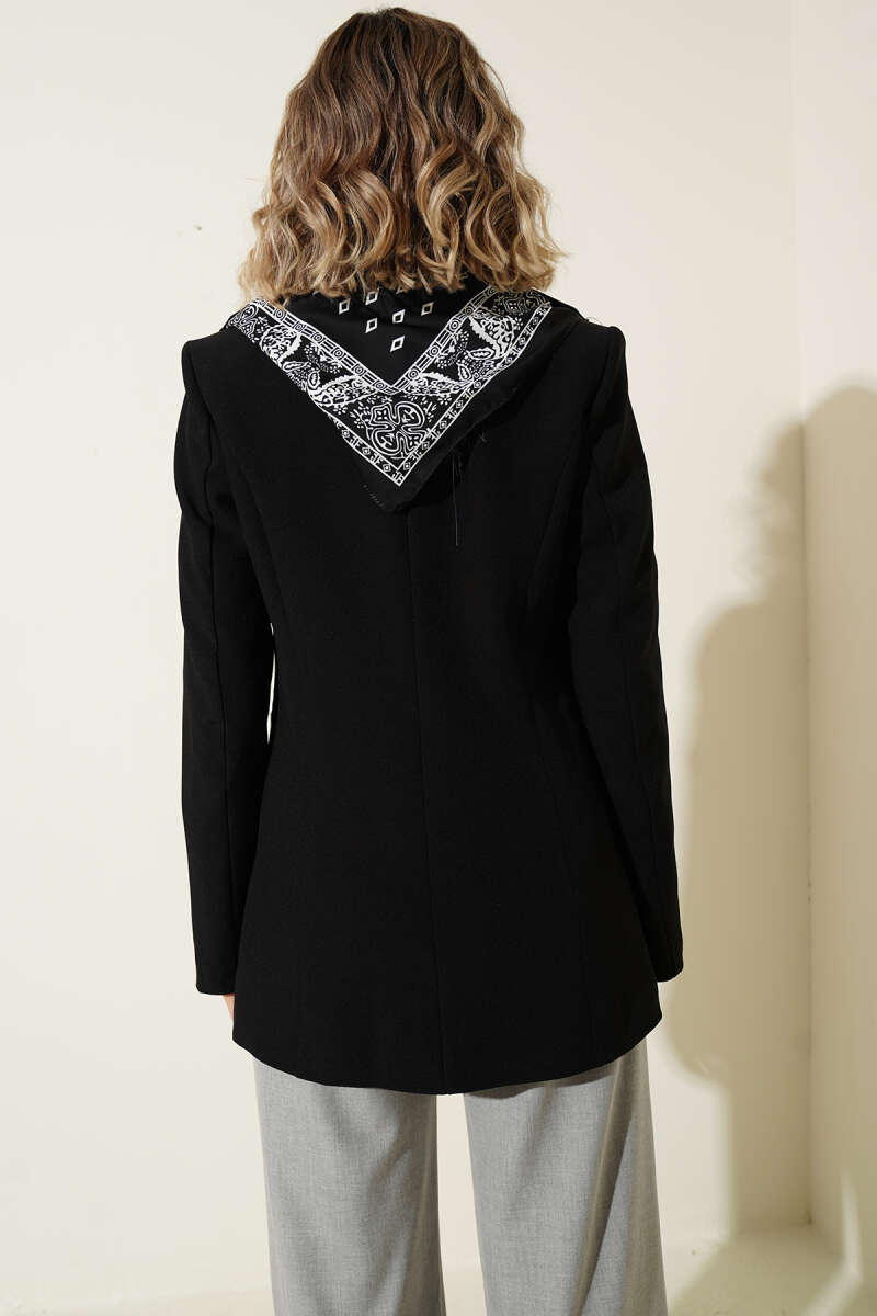 Fular Detaylı Blazer Ceket Siyah