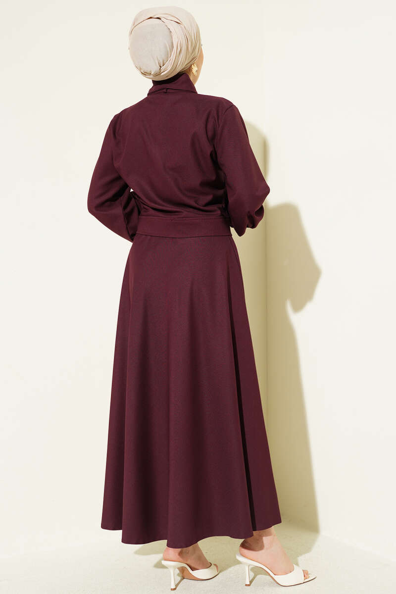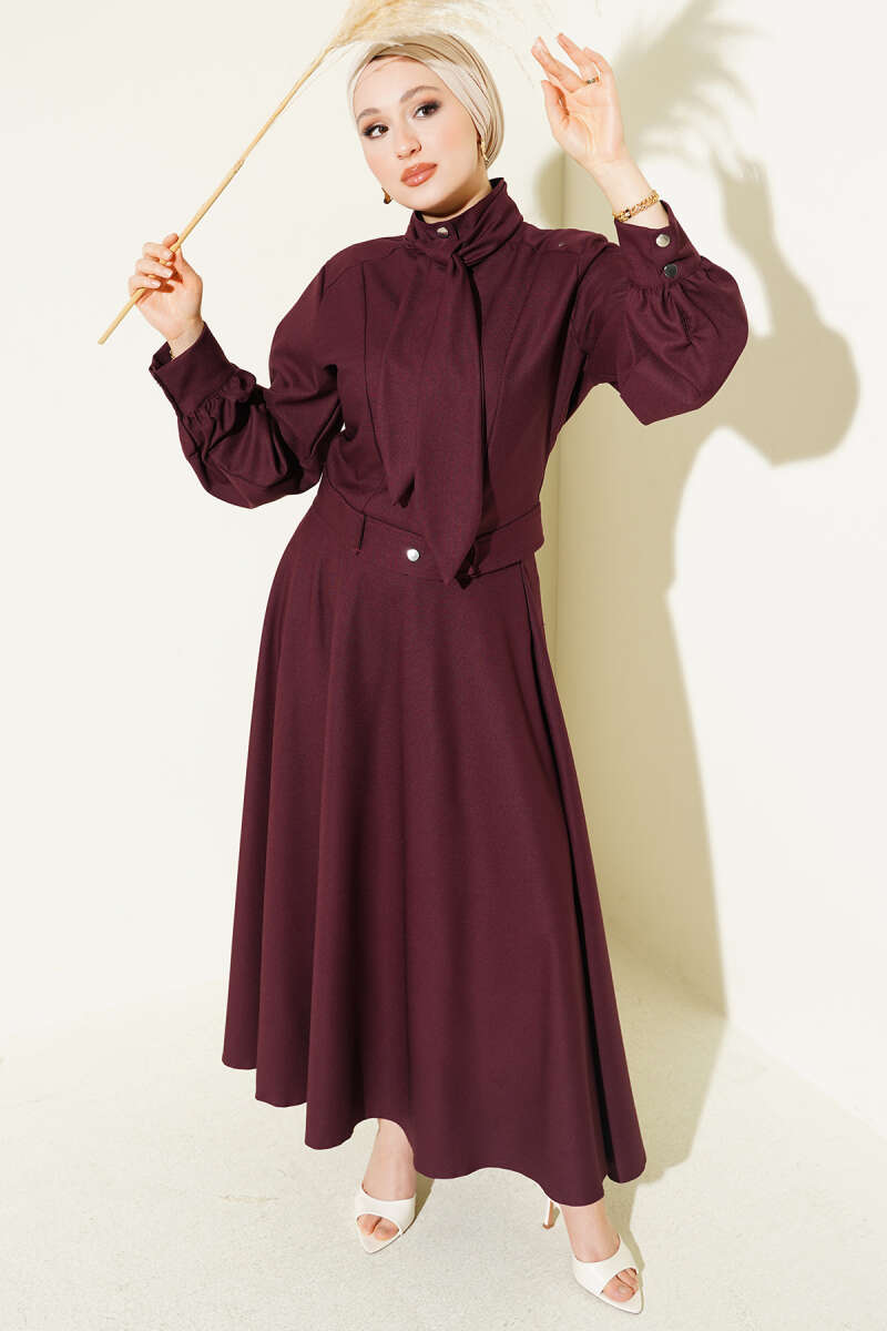 Düğmeli Fırfırlı Etekli İkili Takım Lila