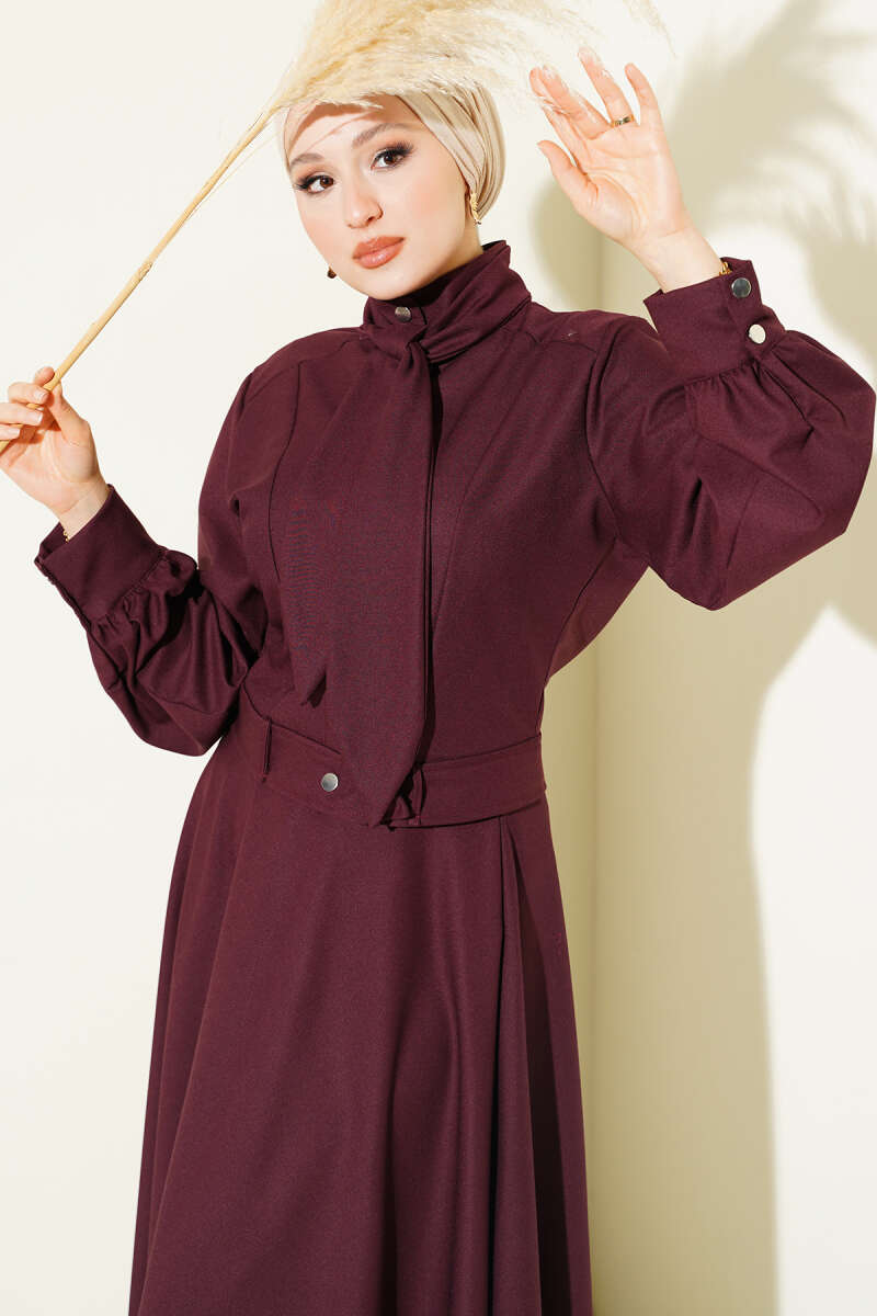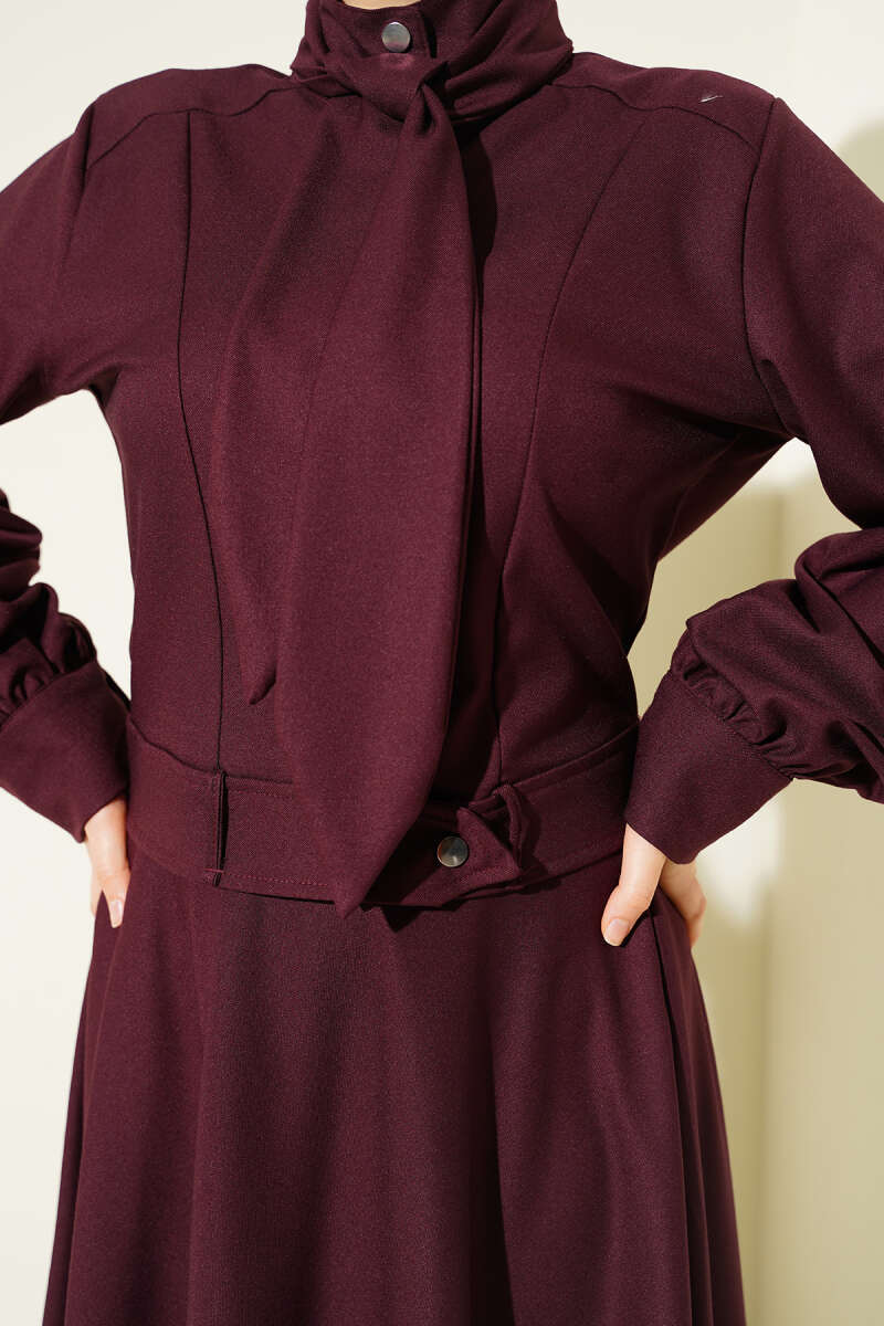 Ekoseli Yaka Bağlamalı Etekli Takım Zümrüt