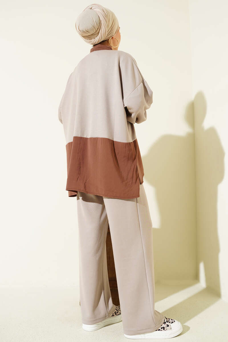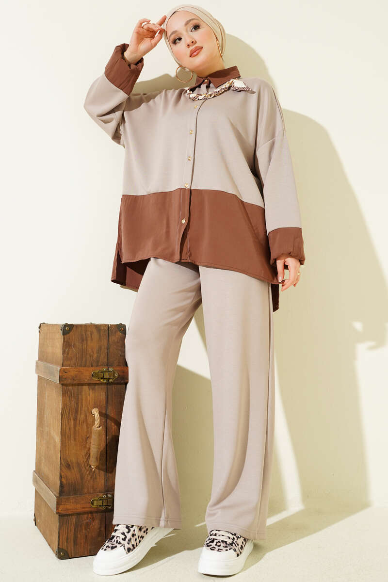 Fular Detaylı Garnili Loyşa İkili Takım Bej