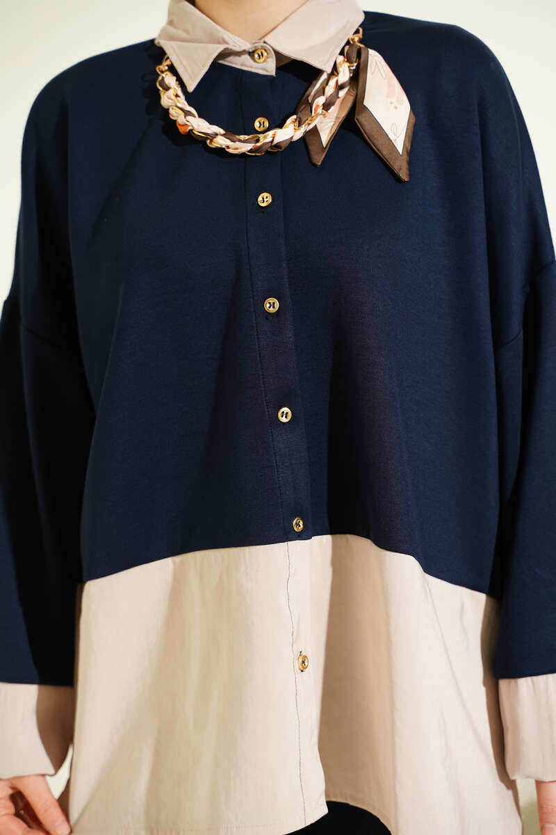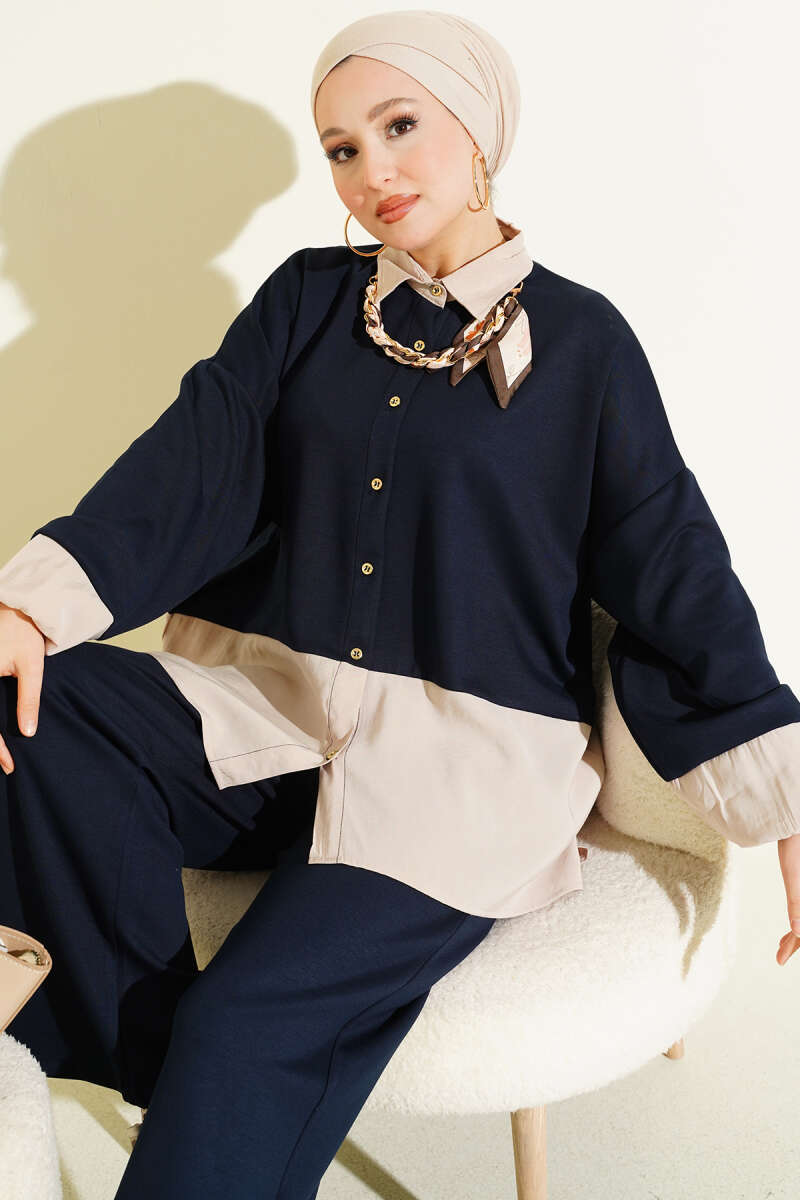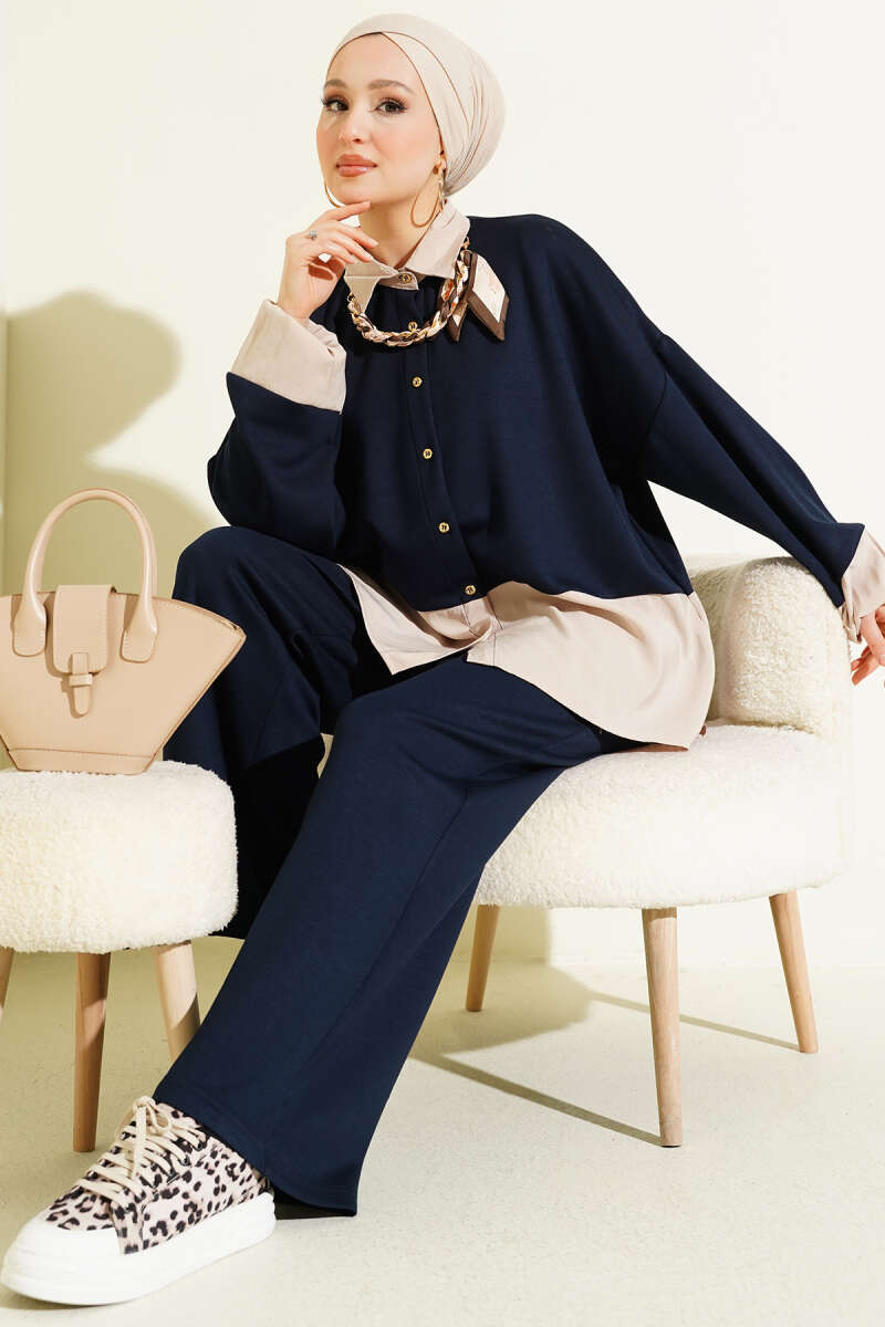 Fular Detaylı Garnili Loyşa İkili Takım Lacivert