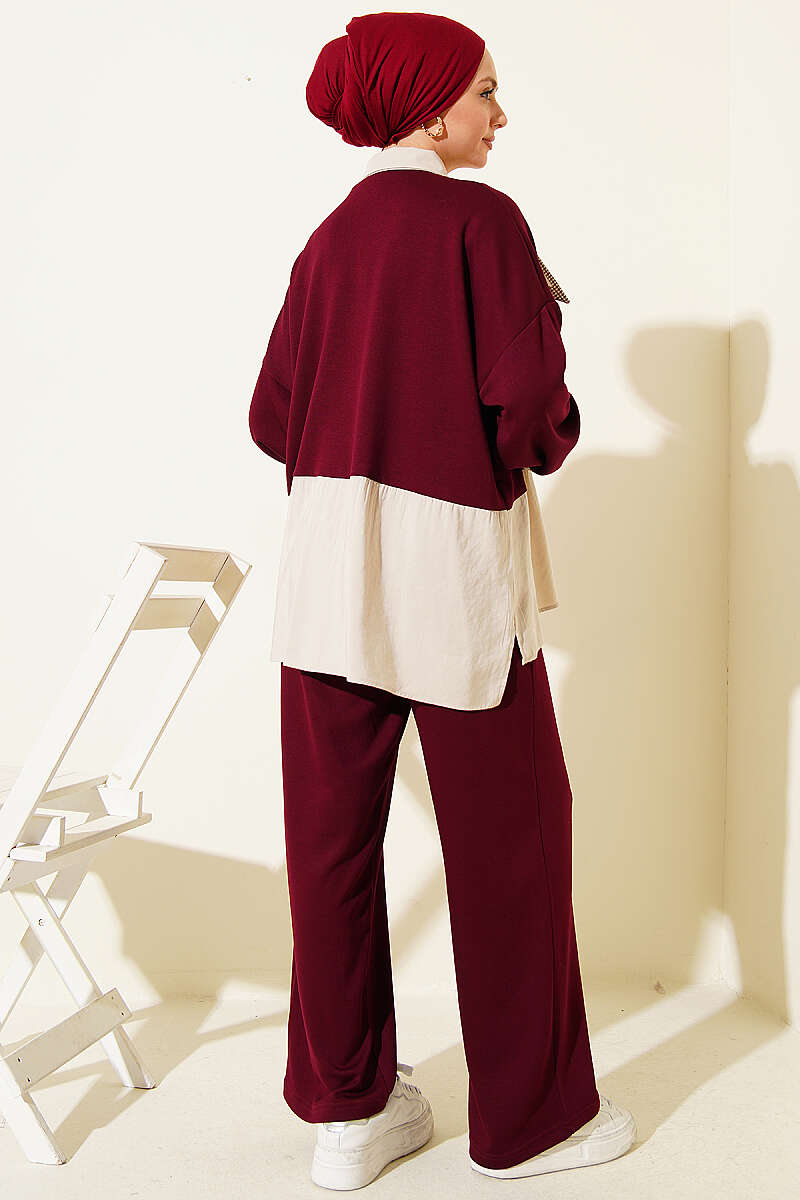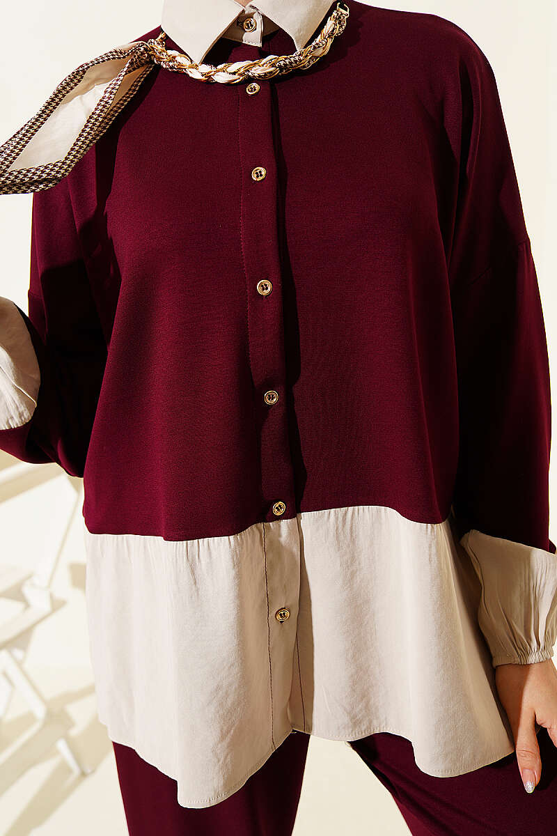 Fular Detaylı Garnili Loyşa İkili Takım Mürdüm