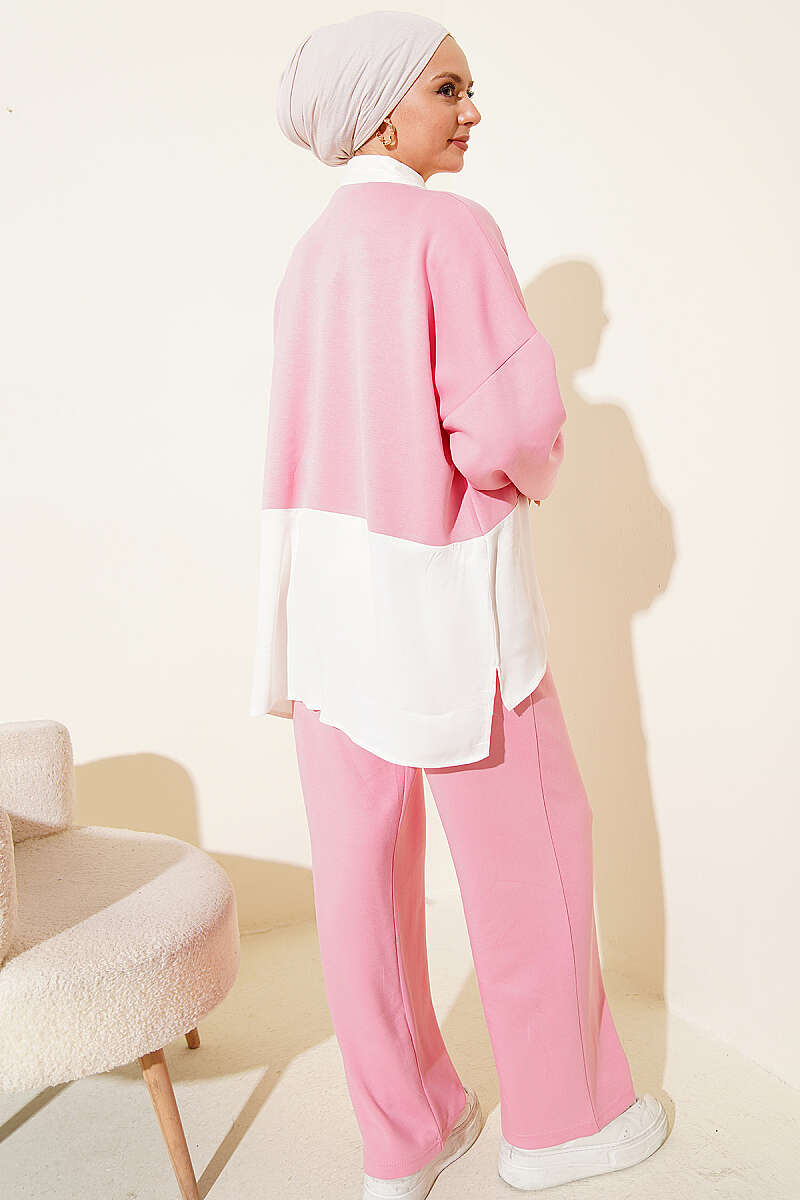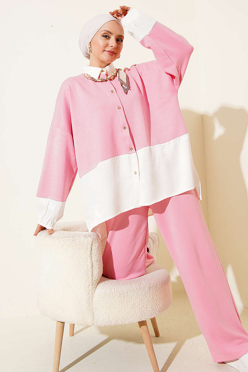 Fular Detaylı Garnili Loyşa İkili Takım Pembe