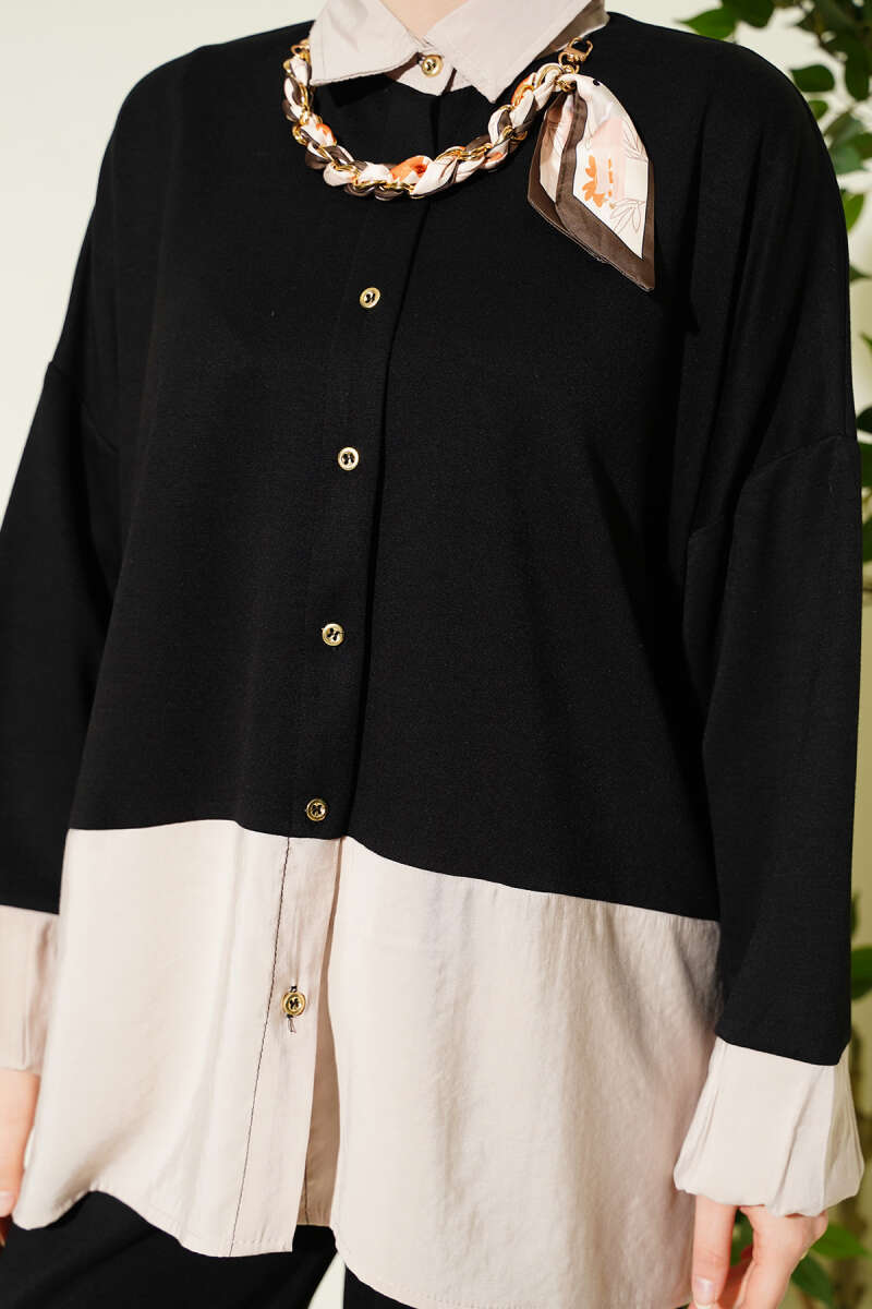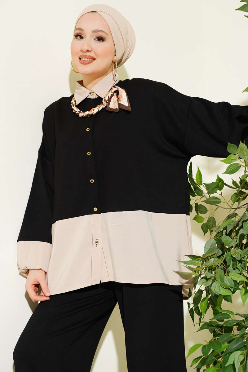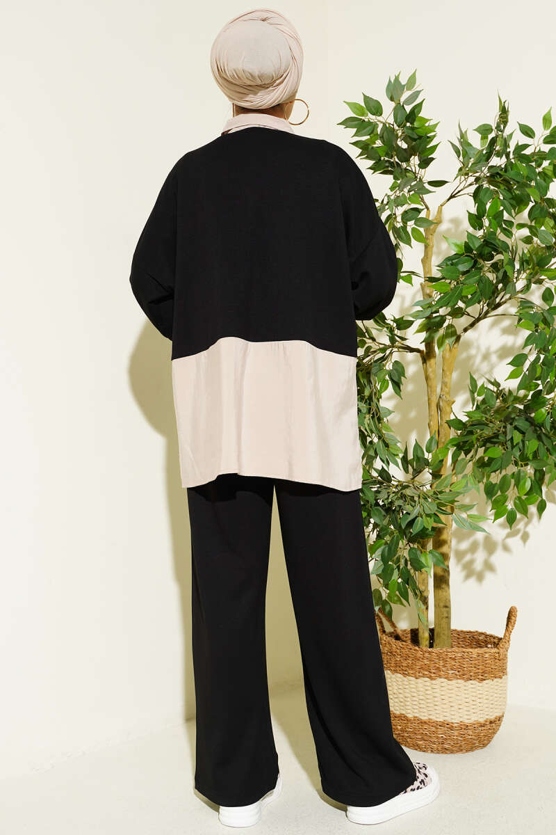 Fular Detaylı Garnili Loyşa İkili Takım Siyah