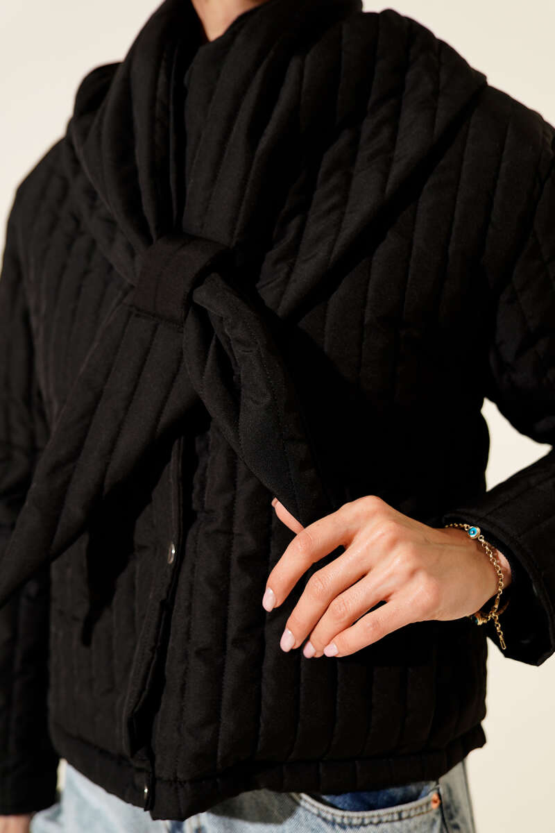 Kuşaklı Rüzgarlıklı Uzun Kaşe Kaban Siyah