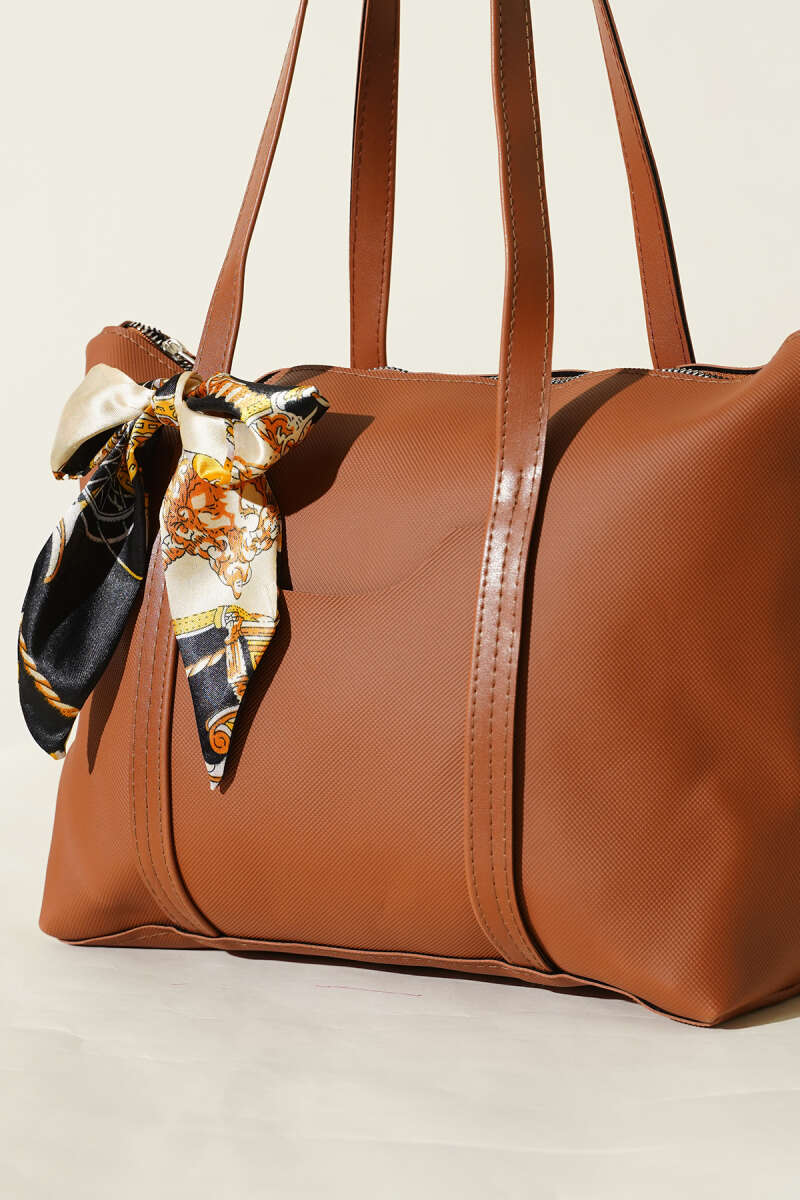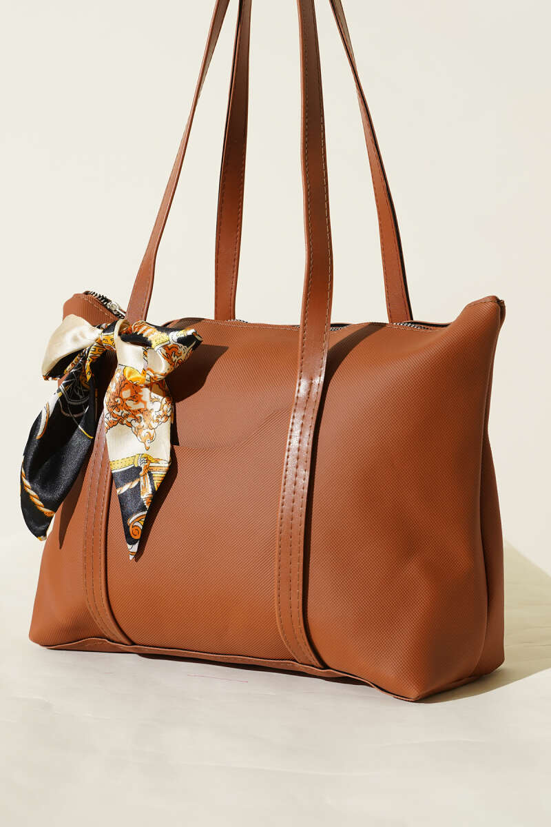 Fermuarlı Üç Bölmeli Çapraz Çanta Taba