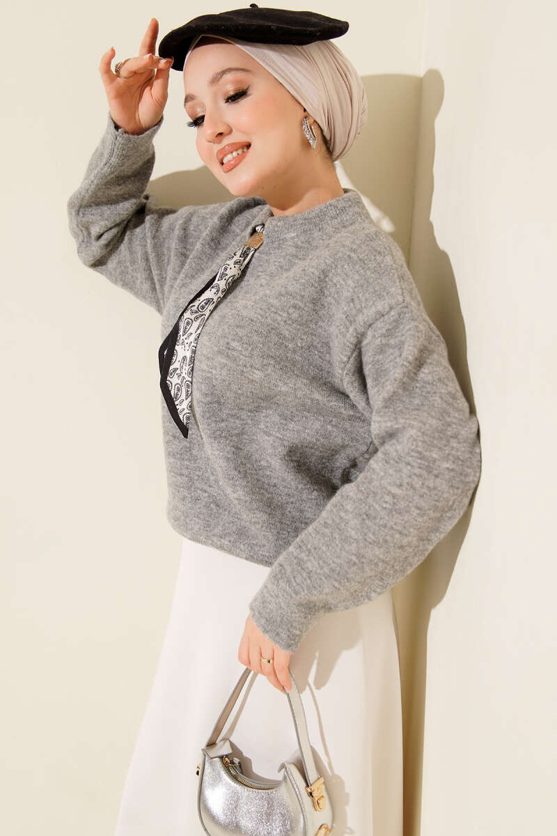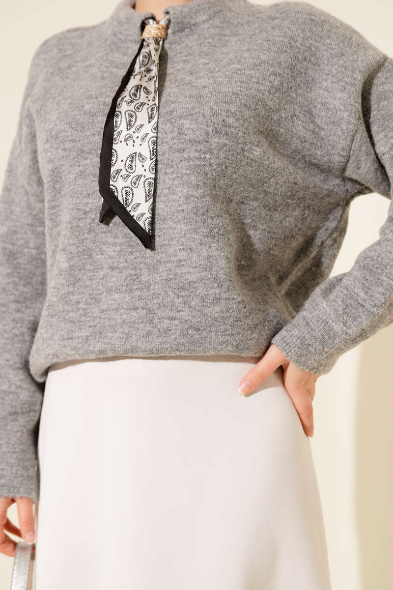 Mini Boncuk Detaylı Eşarp Acı Kahve