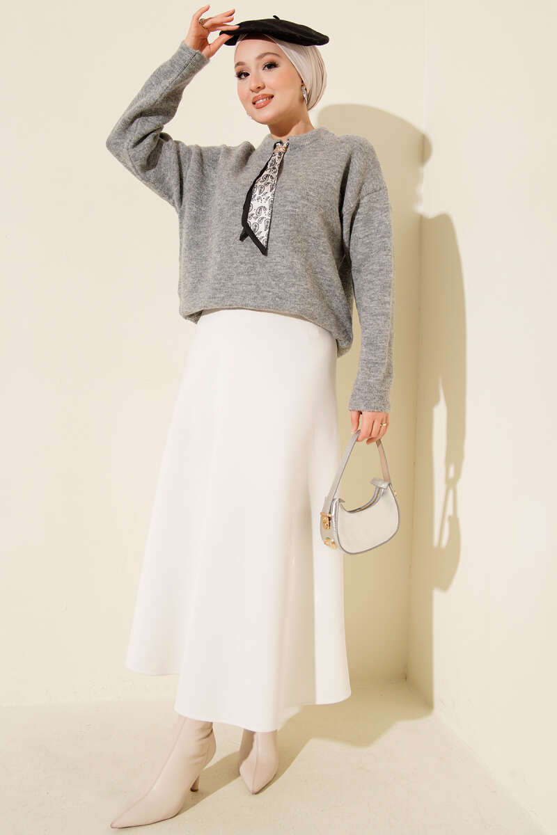 Kapüşonu Kürklü Triko Kazak Büsküvi