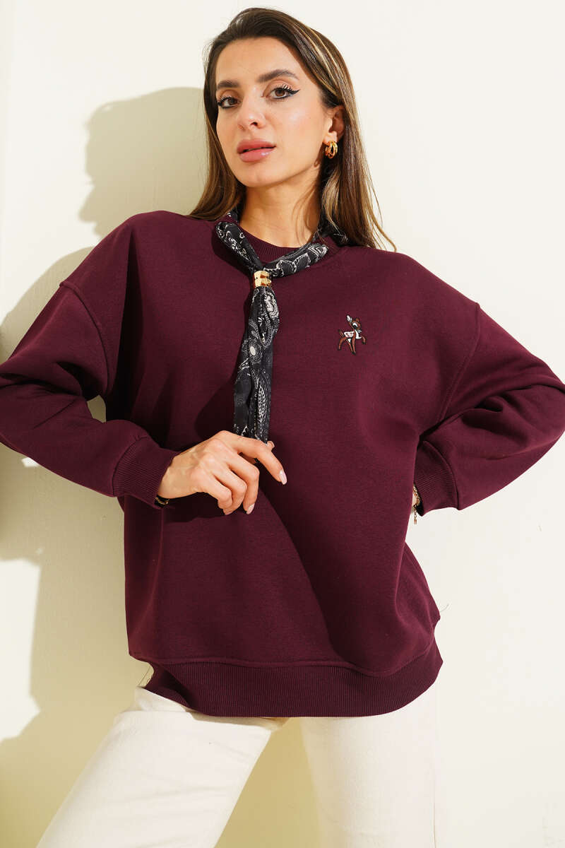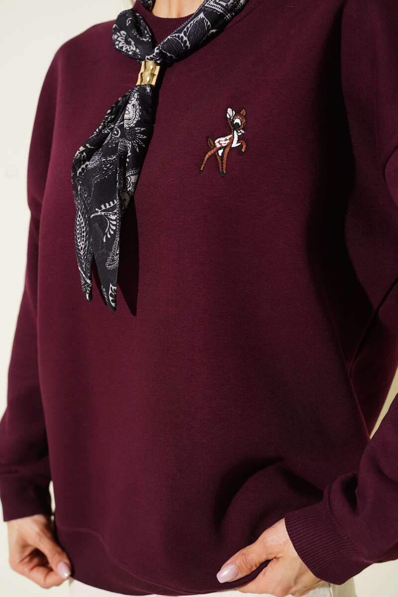 İncİ Detaylı Çapraz Yaka Sakallı Bluz Bordo