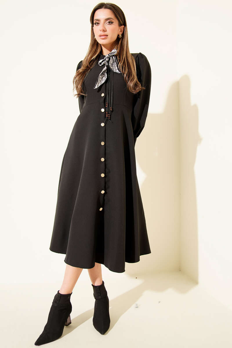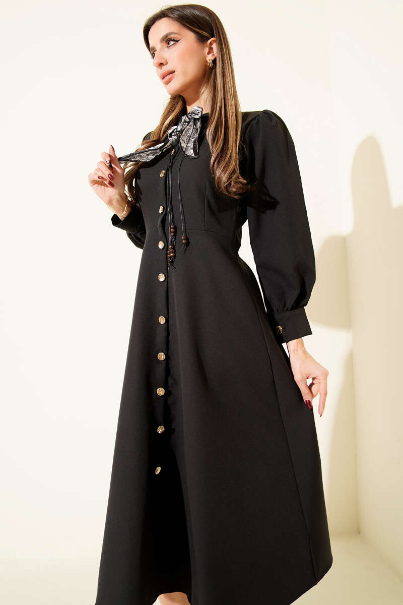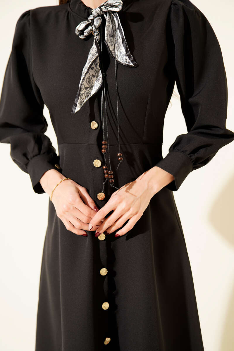 Metal Düğmeli Kolsuz Kot Elbise Koyu Mavi
