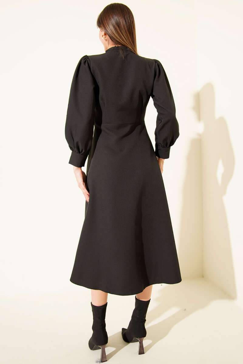 Yakası Yarım Fermuarlı Triko Elbise Kahve