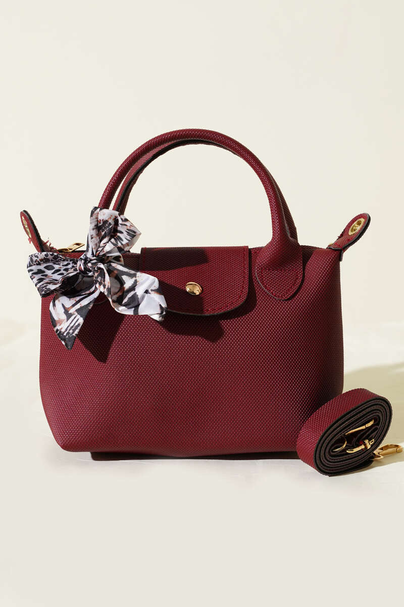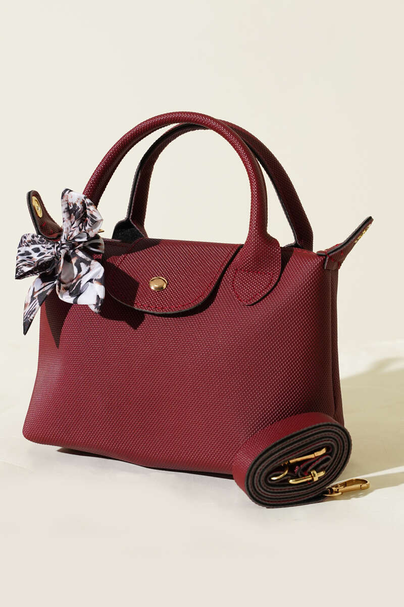 Fularlı Çıtçıt Detaylı Kadın El Çantası Bordo