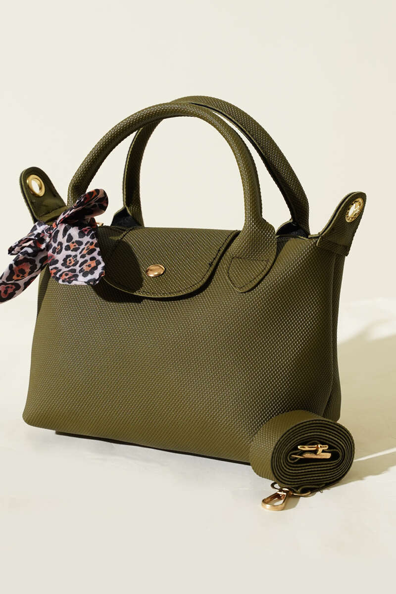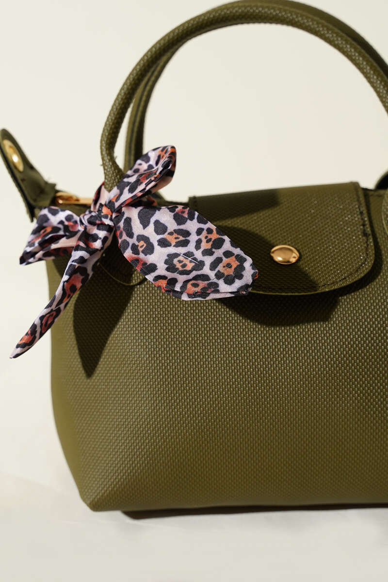 Fularlı Çıtçıt Detaylı Kadın El Çantası Haki