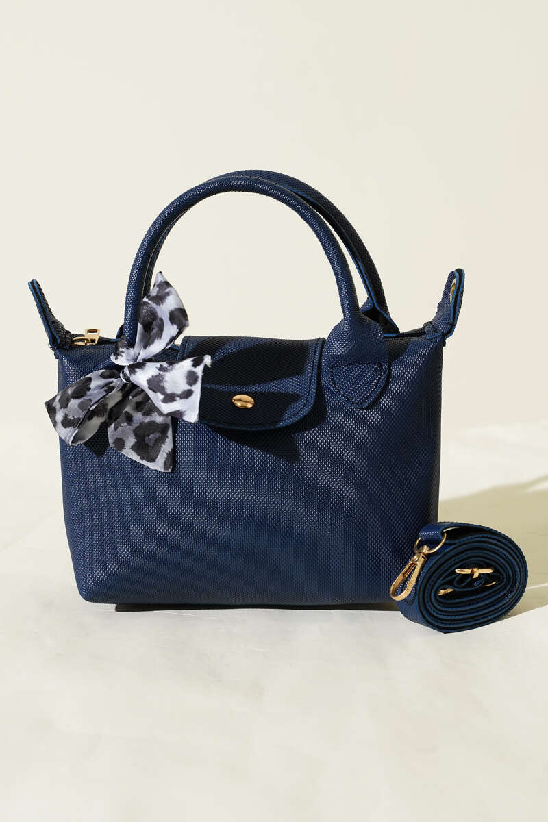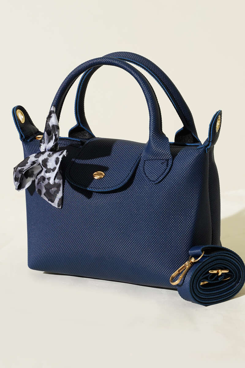 Fularlı Çıtçıt Detaylı Kadın El Çantası Lacivert