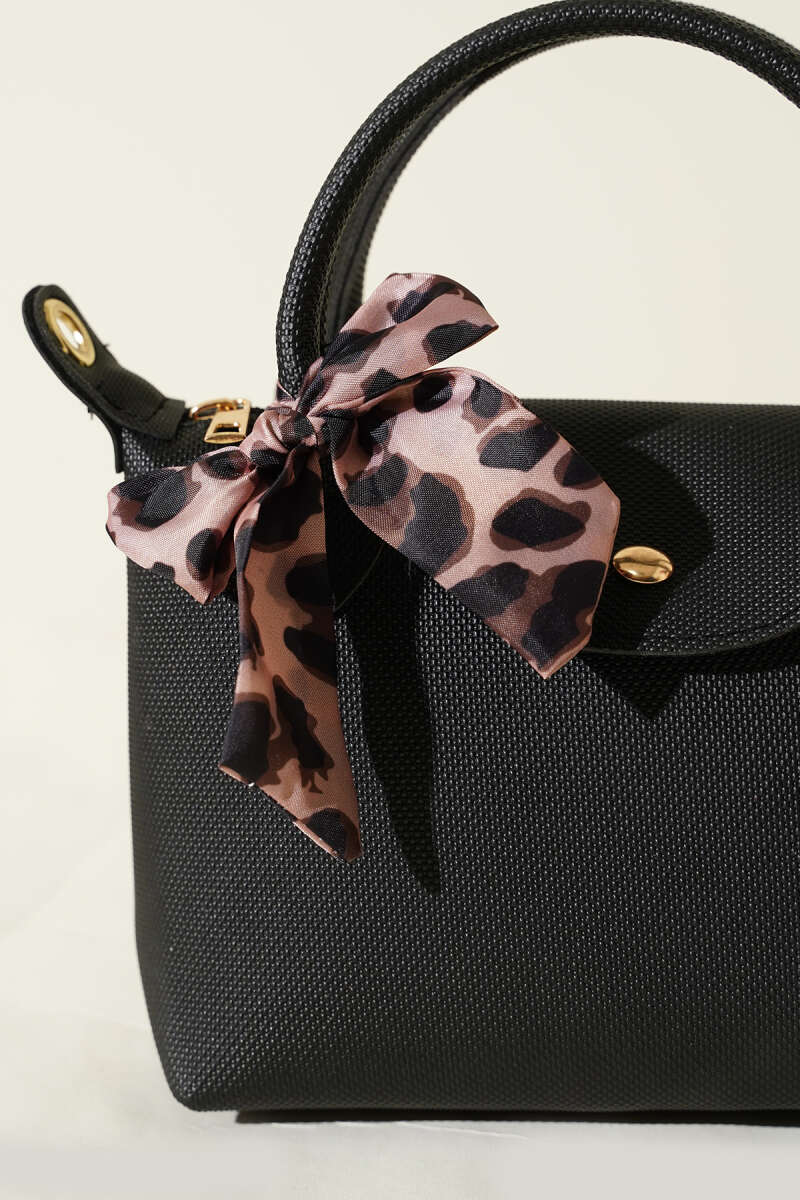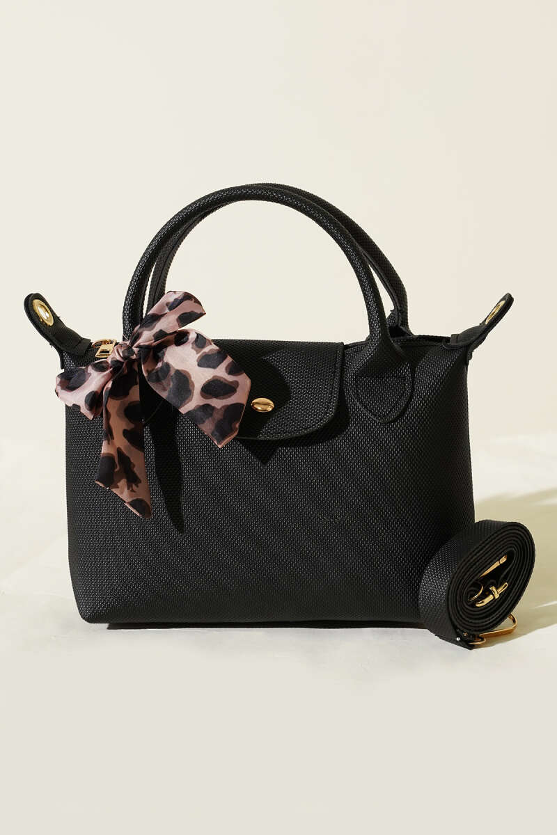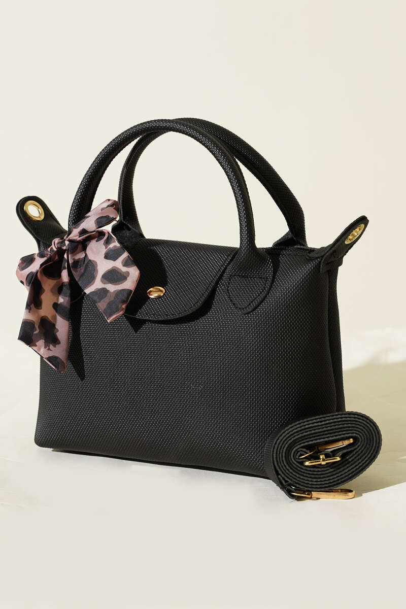 Kısa Kulplu Fularlı Kadın El Çantası Siyah