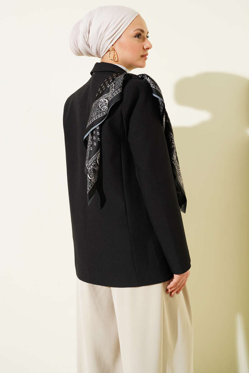 Fularlı Düğmeli Blazer Ceket Kahve