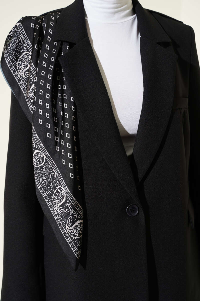 Düğmeli Kuşaklı Basic Ceket Siyah