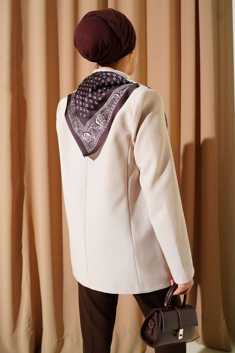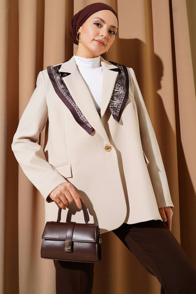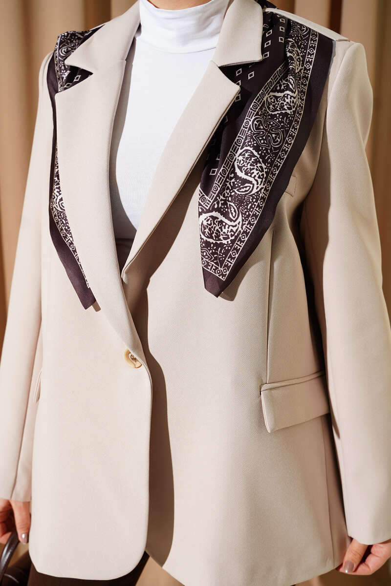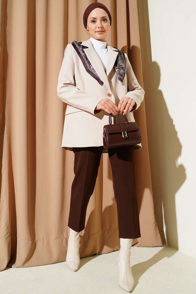 Fularlı Düğmeli Blazer Ceket Kahve