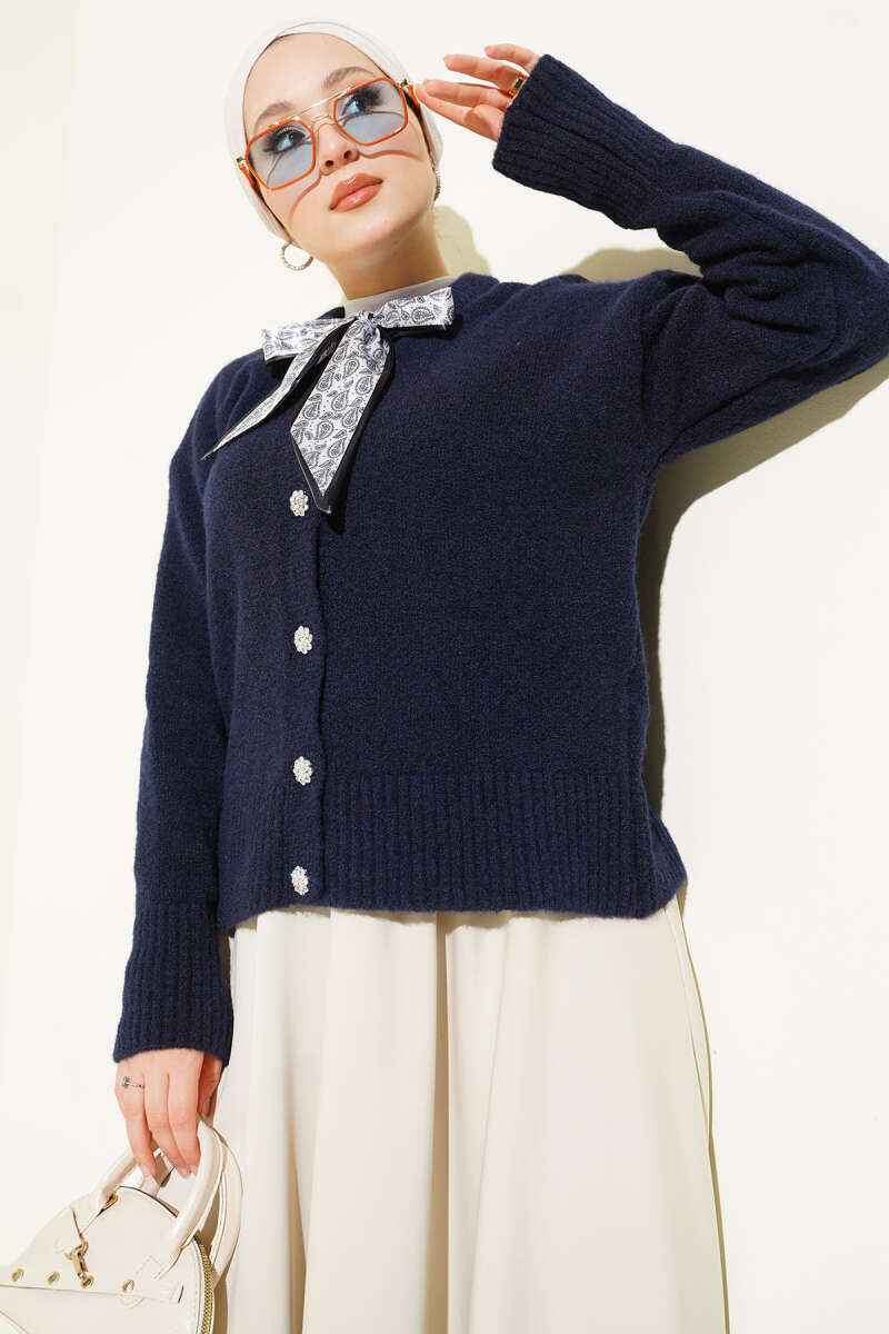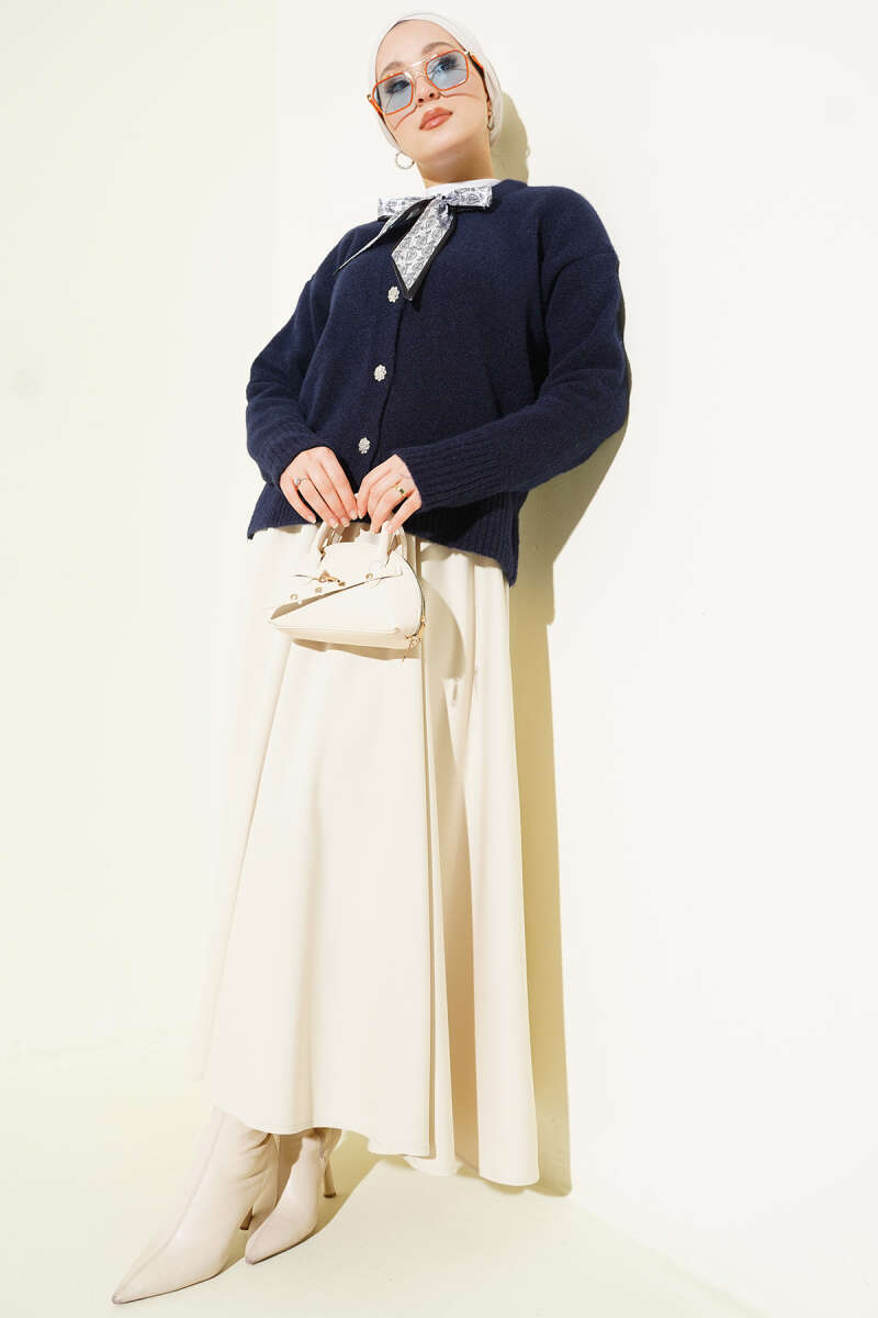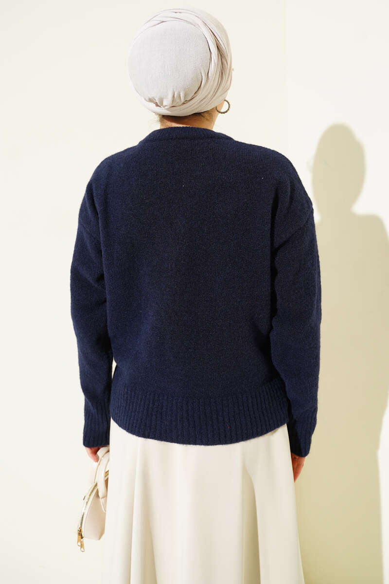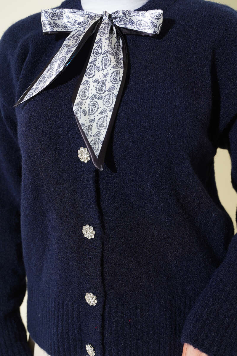 Düğme Detaylı Basic Triko Hırka Lacivert