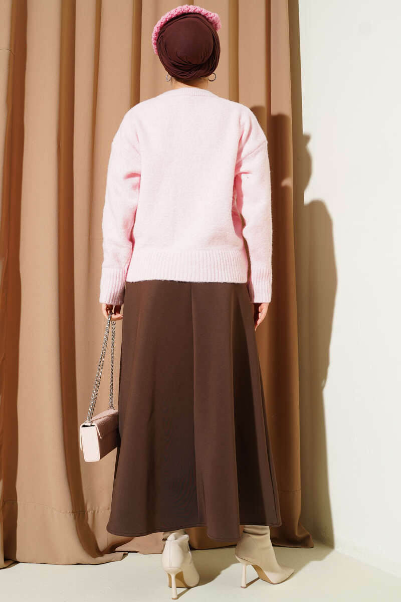Ajurlu İp Kuşaklı Triko Elbise Kahve