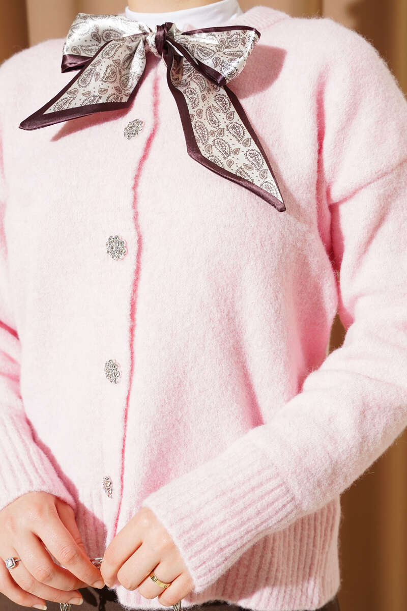 Fularlı Düğmeli Triko Hırka Mürdüm