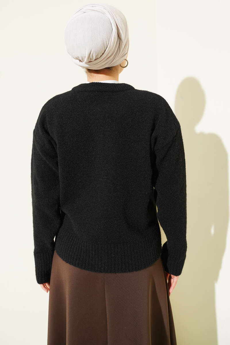 Bisiklet Yaka Sakal Detaylı Kazak Siyah