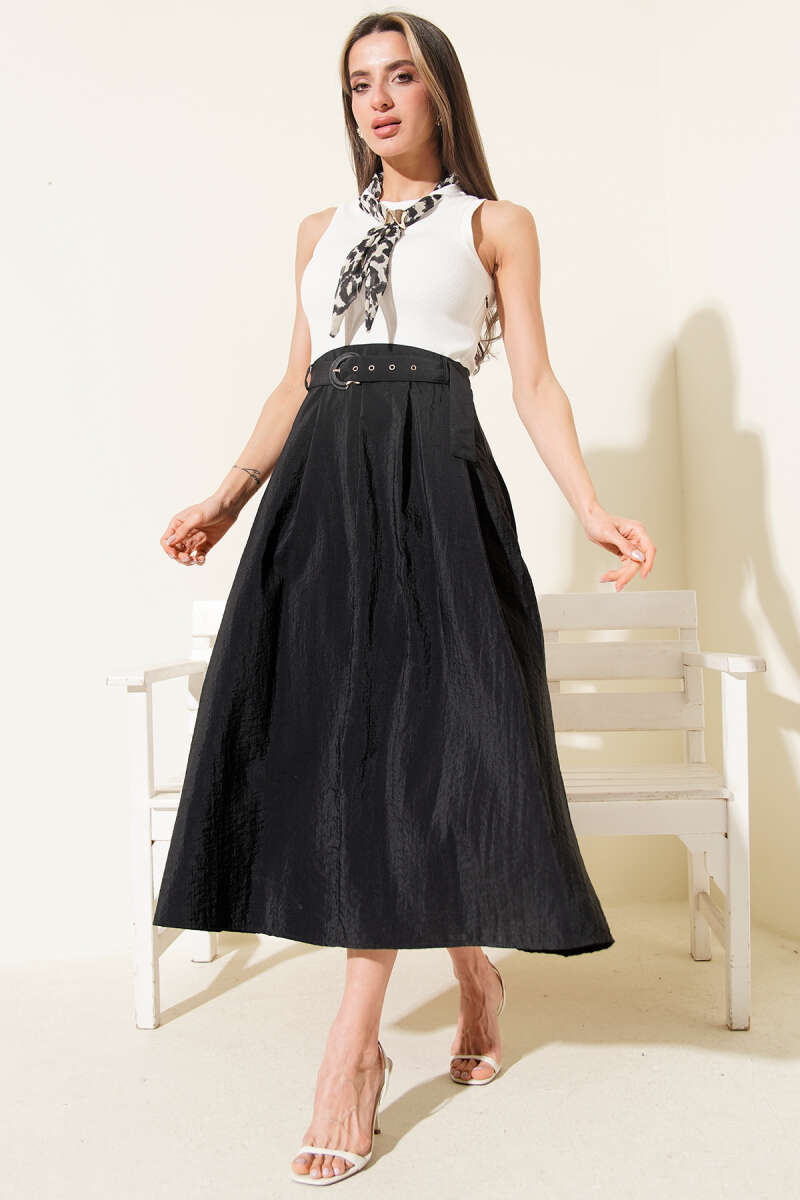 Bel Çımalı Dar Paça Kumaş Pantolon Siyah