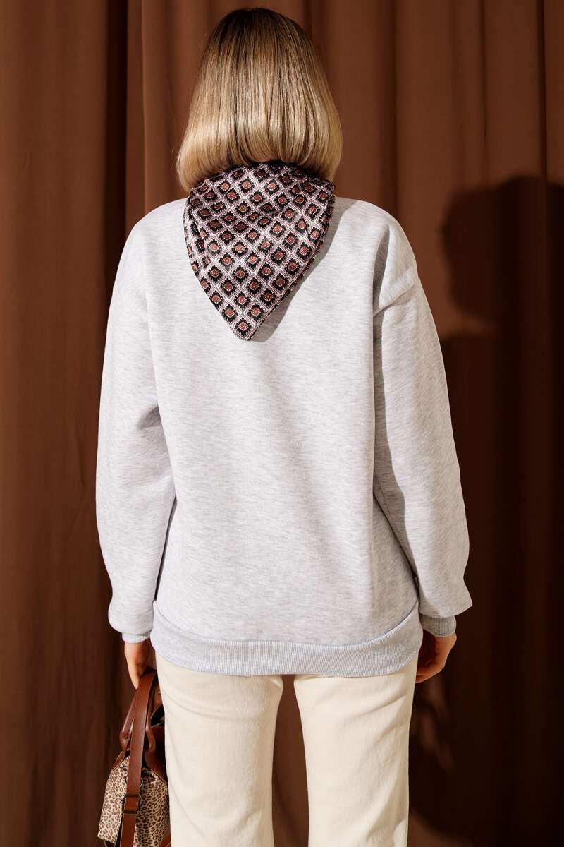 Fularlı Geyik Nakışlı Sweatshirt Melanj Gri
