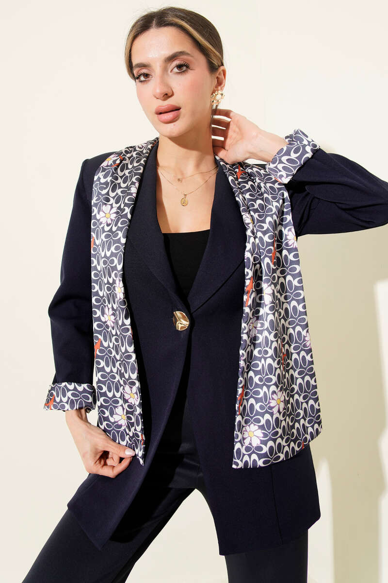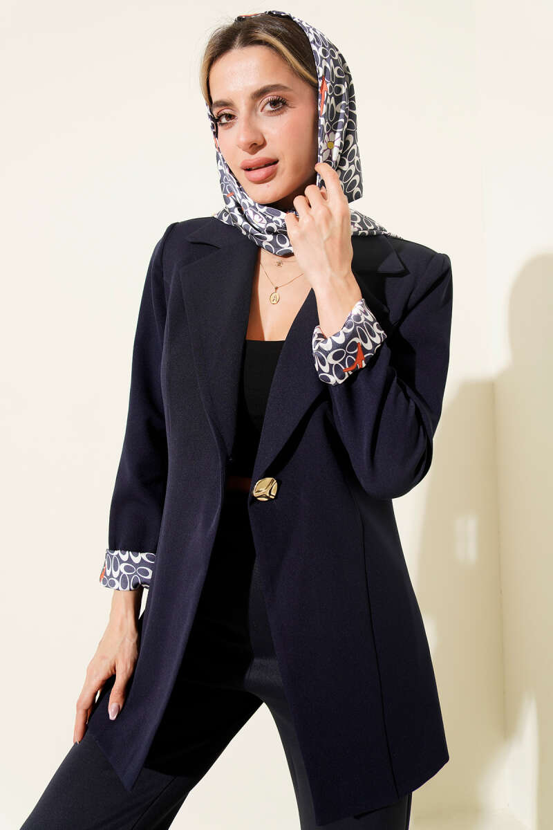 Fularlı Gold Düğmeli Ceket Lacivert