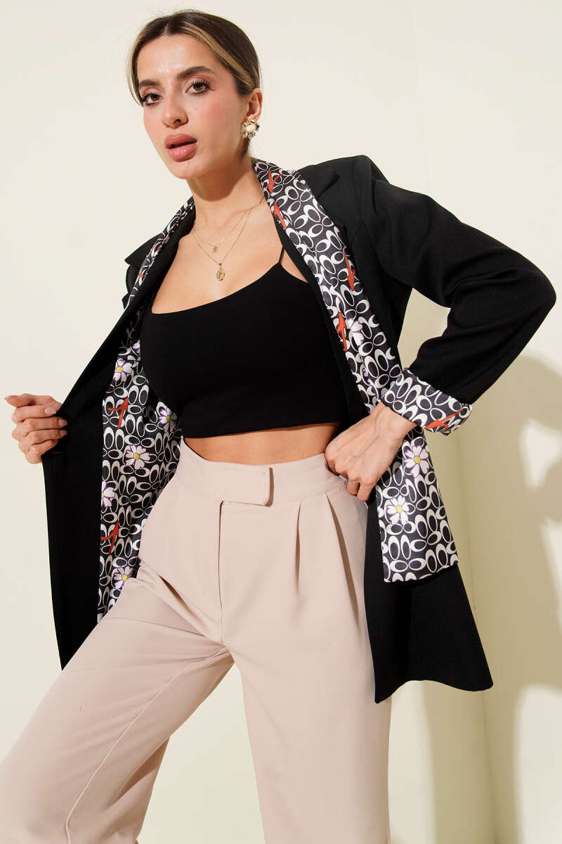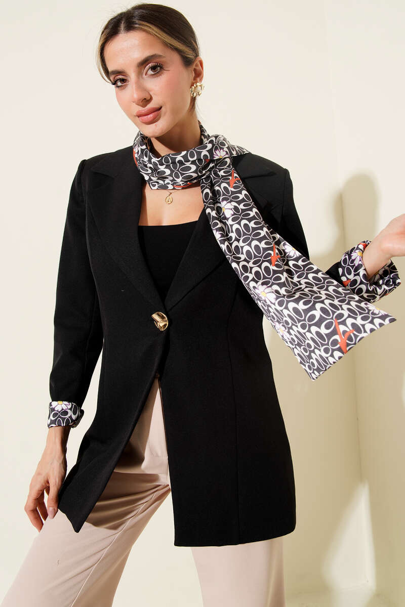 Kol Şeritli Düğmeli Blazer Ceket Lacivert