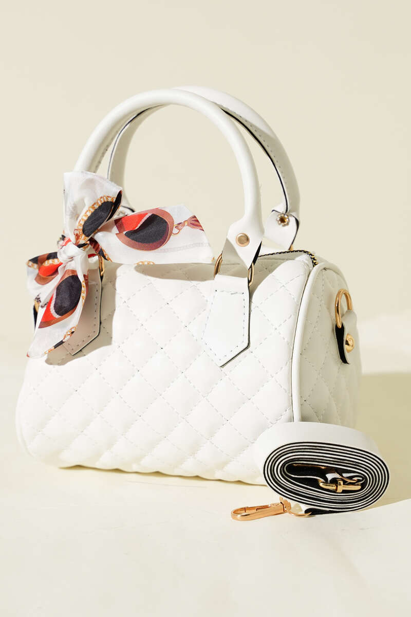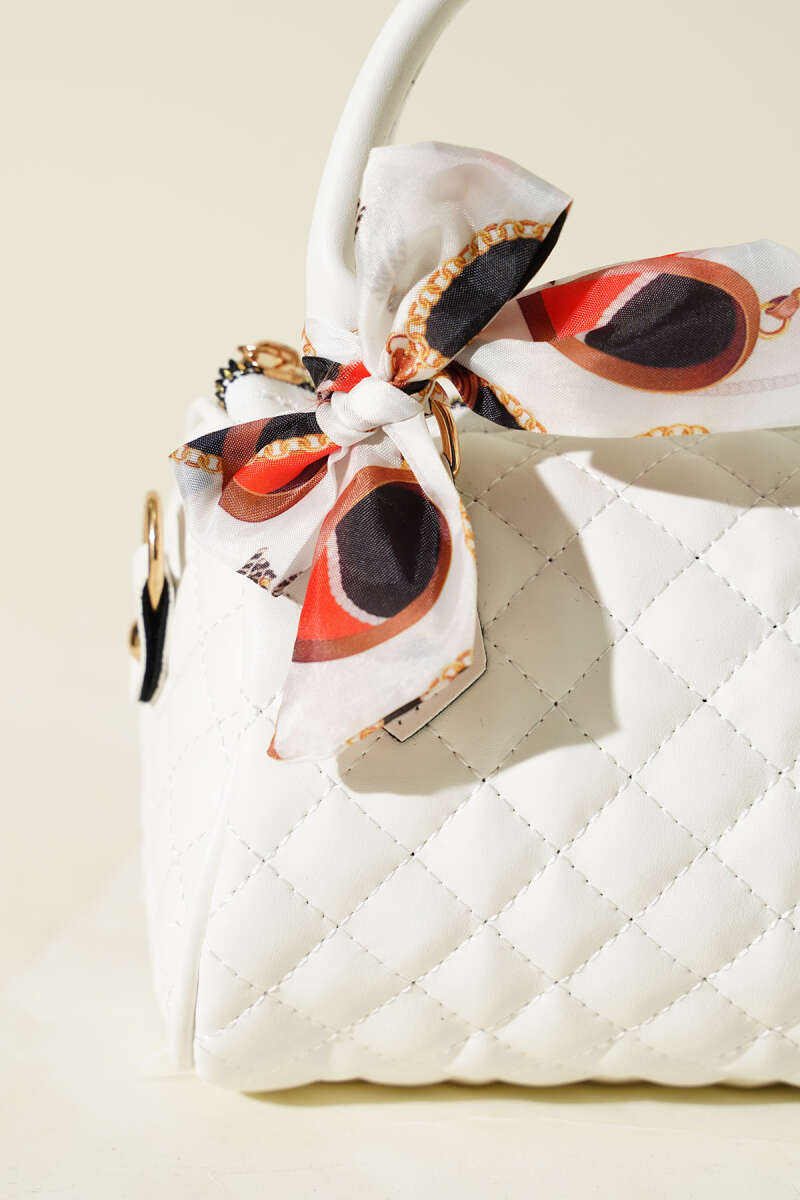 Fularlı Kapitone Mini Kadın El Çantası Beyaz