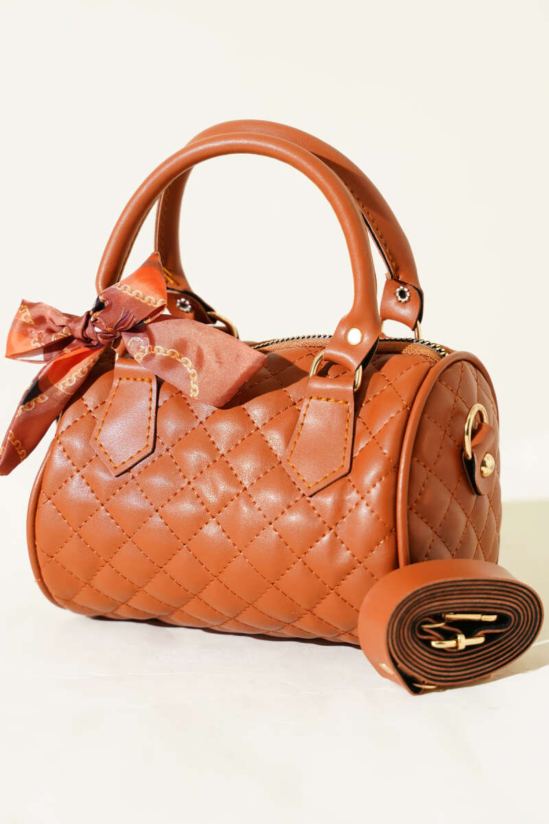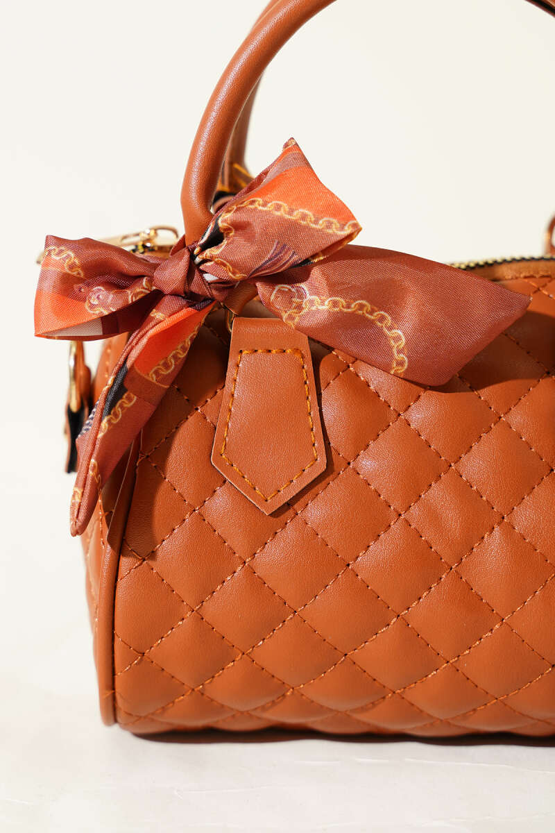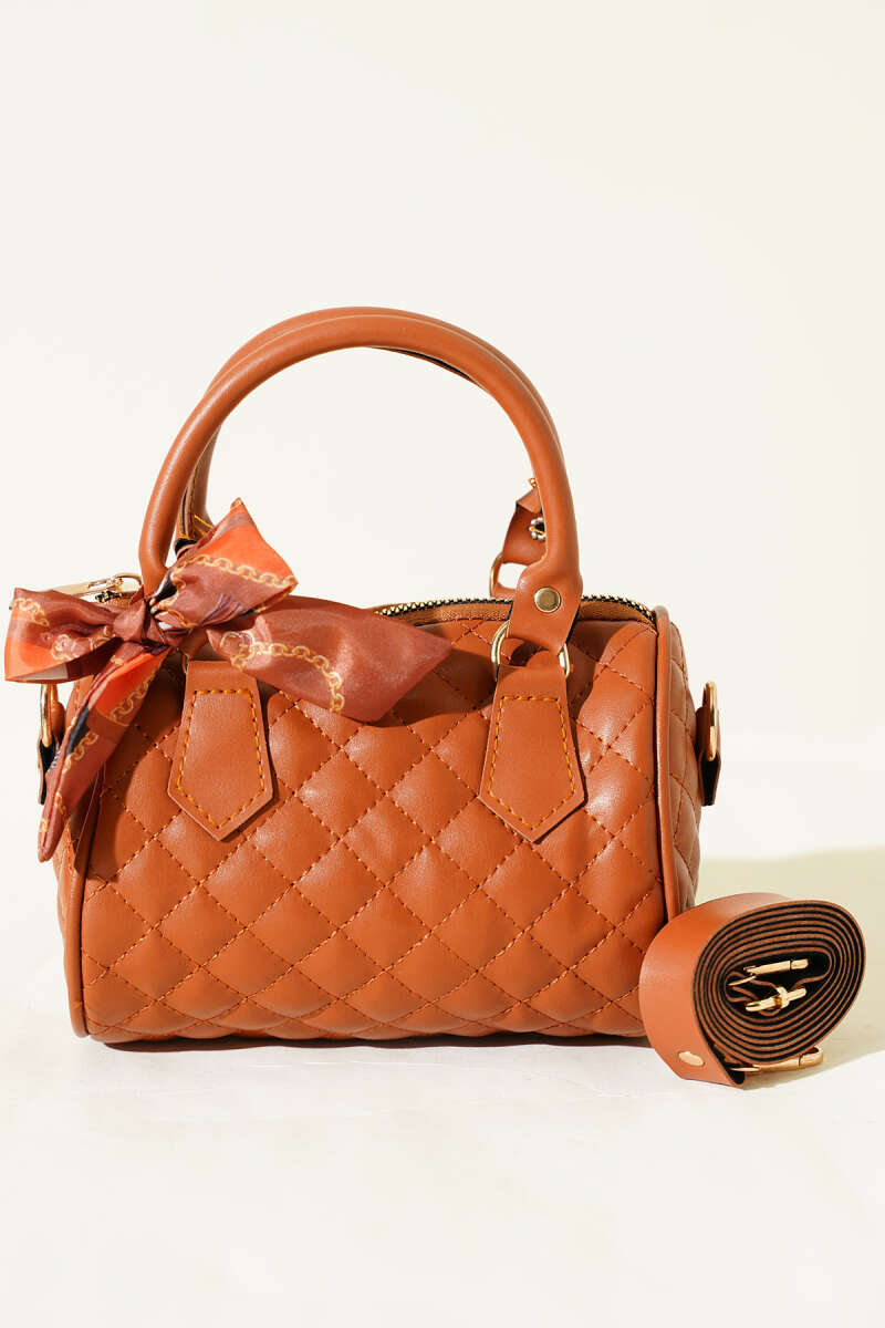 Kısa Kulplu Fularlı Kadın El Çantası Taba